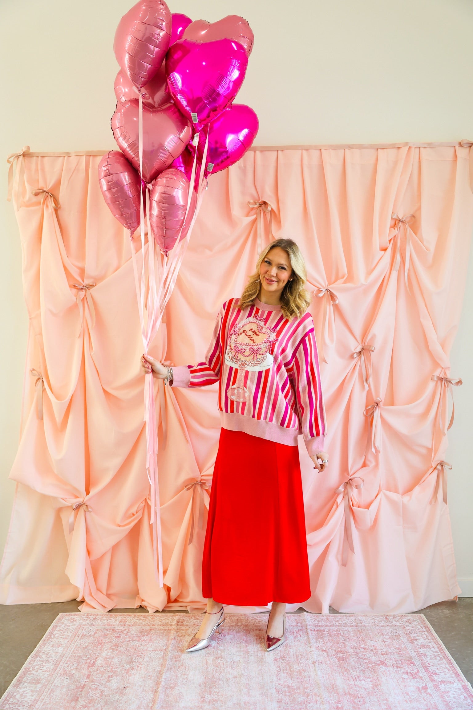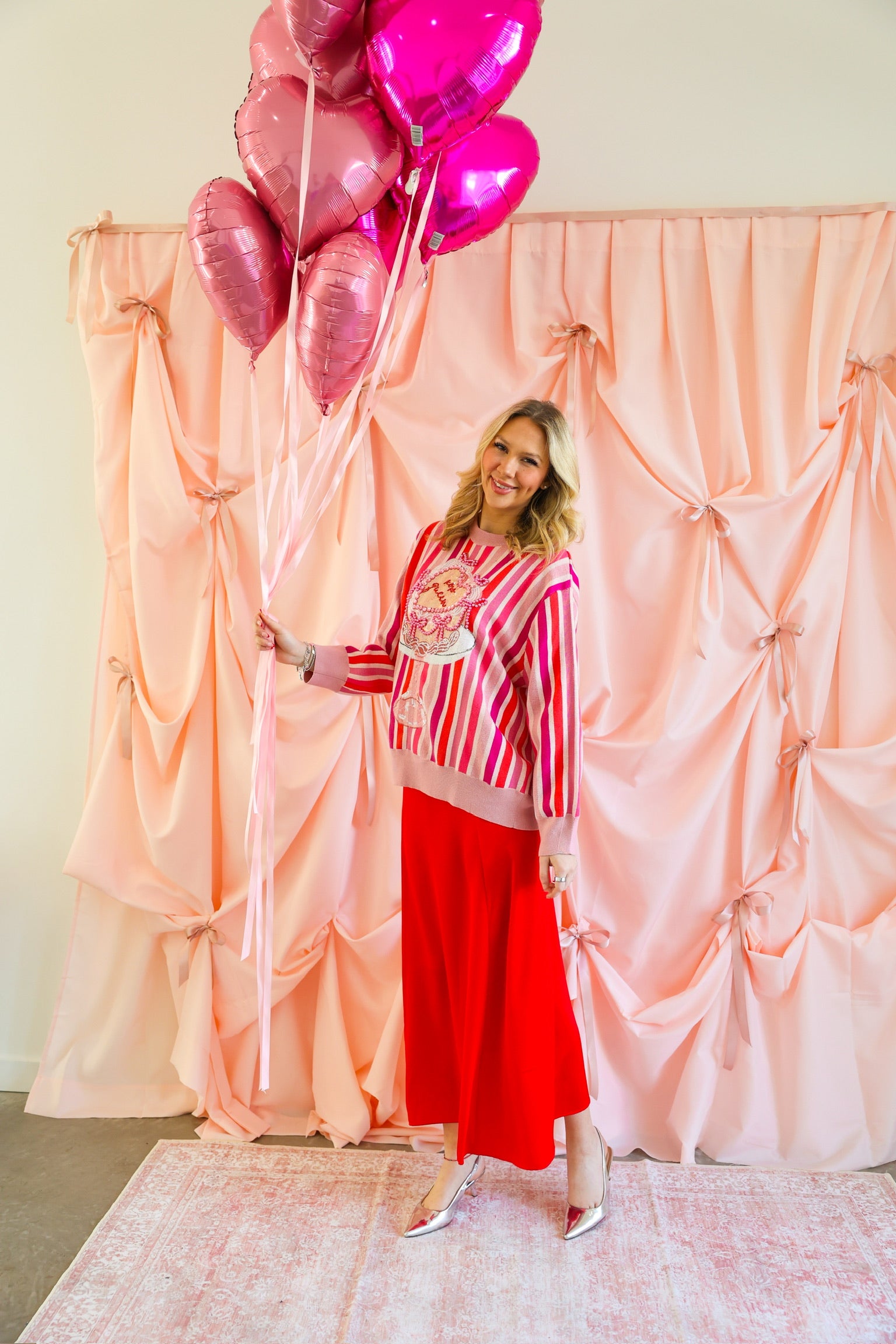 Pink Striped “XOXO Queen” Heart Cake Sweater – Queen of Sparkles 🍰💖