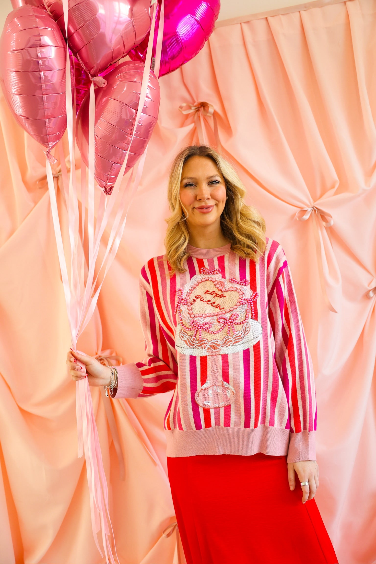 Pink Striped 'Xoxo Queen' Heart Cake Sweater Queen Of Sparkles