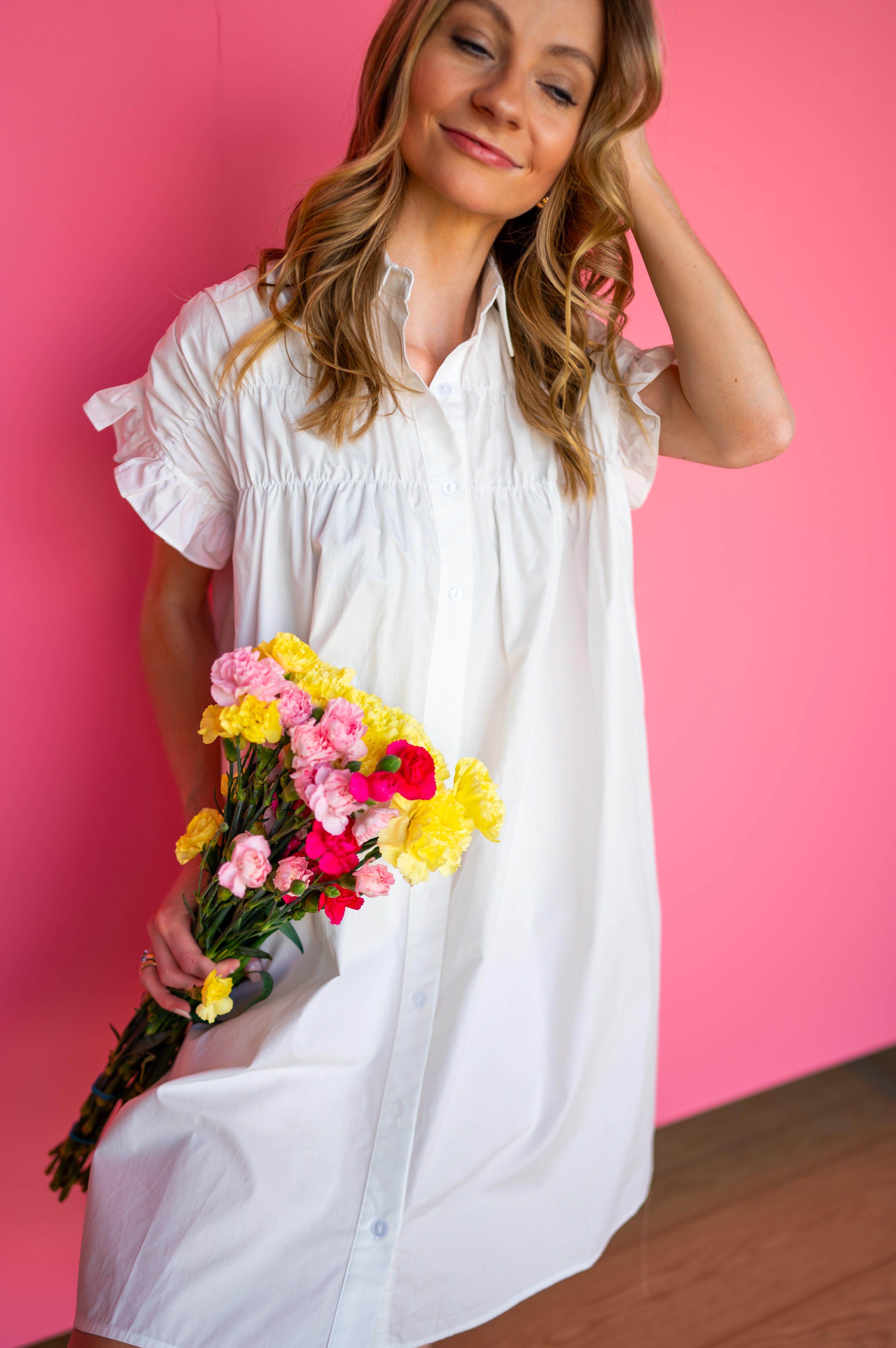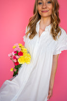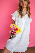 This Molly Bracken White Harper Dress is perfect for any occasion - from everyday wear to date night. Its button front adds a touch of playful flair, while allowing for versatile styling with sneakers or heels. Stand out in style with this dress!