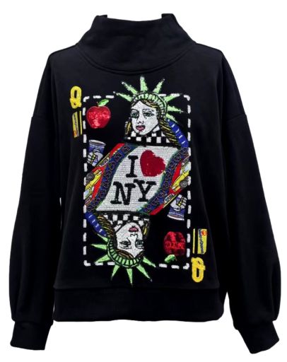 Black NYC Queen Card Mock Neck Sweatshirt Queen of Sparkles