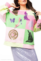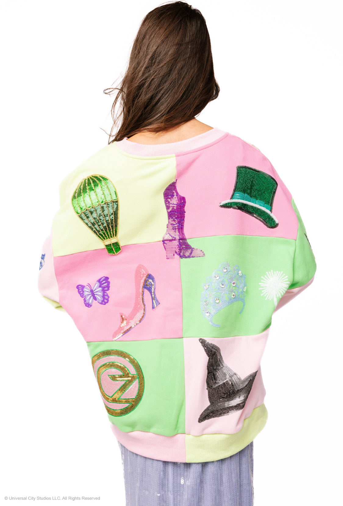 Licensed, Lavender, Pink & Green Checkered Wicked Icon Sweatshirt Queen of Sparkles