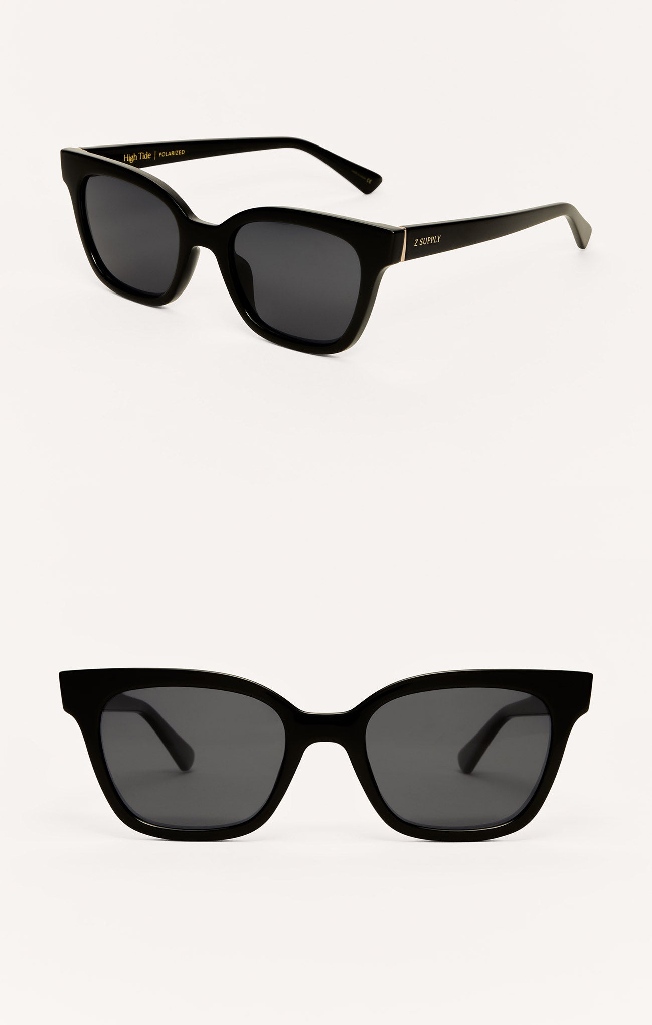 Crisp polished black frames with grey polarized lenses make this pair effortlessly sophisticated. The ultimate staple for sunny days and sleek outfits.