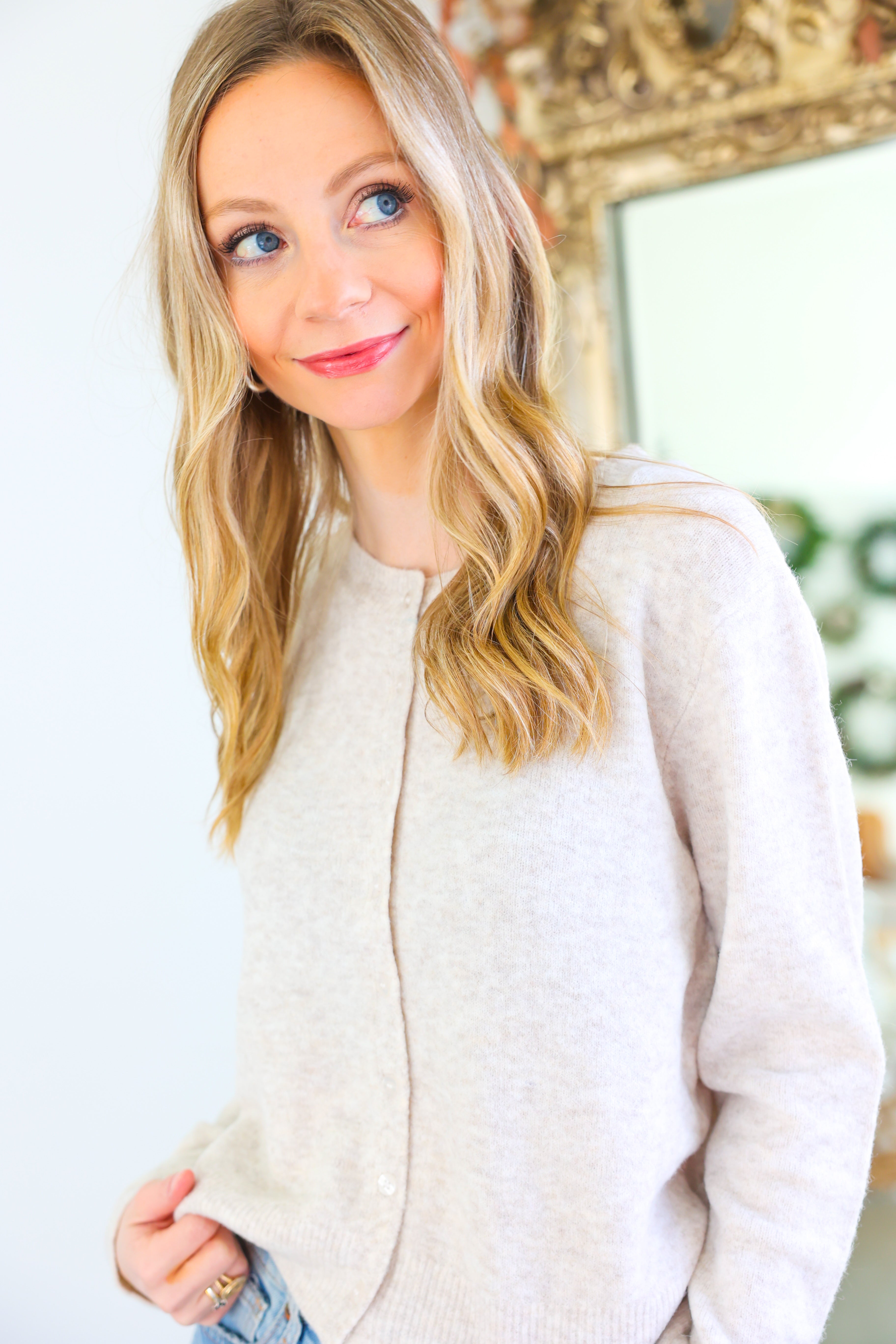 This relaxed crewneck cardigan is made from cozy sweater yarns with an easy button-up front that’s perfect for layering. Whether tossed over a tank or worn solo, it’s the ideal go-to for cozy, casual days!
