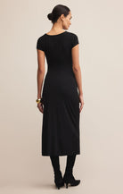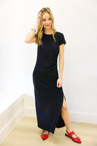 Featuring a crew neckline and short sleeves, this fitted midi dress offers a lightweight feel with a luxurious soft wash. Crafted from a blend of 90% rayon and 10% spandex, it ensures both comfort and flexibility. With a length of 48 inches from the shoulder, it perfectly balances style and ease for any occasion!