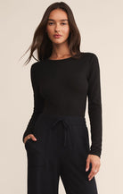 This crew neck top is made from our signature Second Skin Baby Rib with a touch of stretch for a flawless fit. It can be worn tucked or untucked and is easily layered over, making it a year-round go-to.