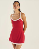 The Emiliana Dress has integrated support features, including a built-in bra with padded cups for comfort and security during active movement. This versatile design seamlessly blends functionality with style, incorporating convenient built-in shorts with pockets that provide practical storage without compromising its sleek, athletic aesthetic.