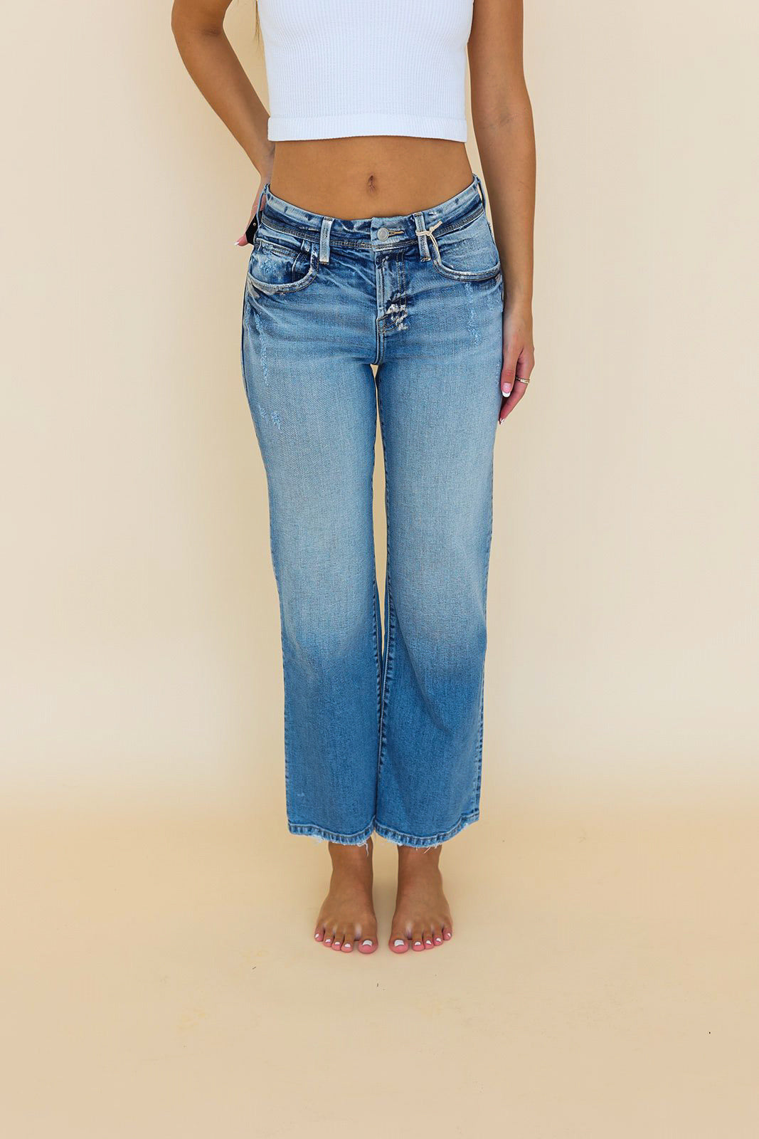 Upgrade your denim game with our Silver Slay Wide Leg jeans. These premier denim jeans offer a high rise, wide leg fit, perfect for a trendy and flattering look. Stand out with the unique silver back pocket detailing and light distressing! These are a show stopping wardrobe staple! Perfect for a night out or running everyday errands!