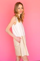 Channel your inner cool girl with the S'Edge Twiggy Dress. This preppy colorblock design in white and light tan features practical pockets and stylish front chest buttons for that effortlessly chic look. Versatile enough to dress up with heels for brunch or pair with trendy tennis shoes for campus strolls. The ultimate statement piece for the fashion-forward woman who values both style and function!