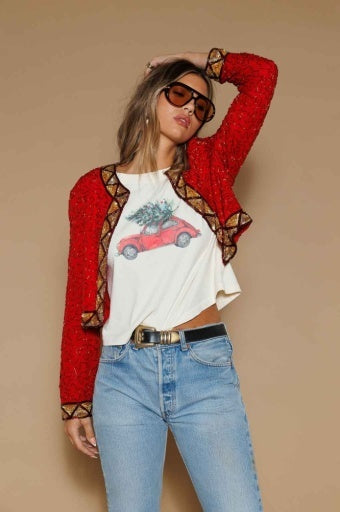 Spread festive cheer with the Red Holiday Car with Tree Tee—a charming design that captures the magic of the season. This nostalgic graphic celebrates holiday traditions and winter wonder, making it the perfect choice for festive gatherings and cozy celebrations. Soft and comfortable for all-day wear, it's an ideal gift for anyone who loves seasonal style with a touch of whimsy. Wear your holiday spirit proudly and create memorable moments in this delightful tee.