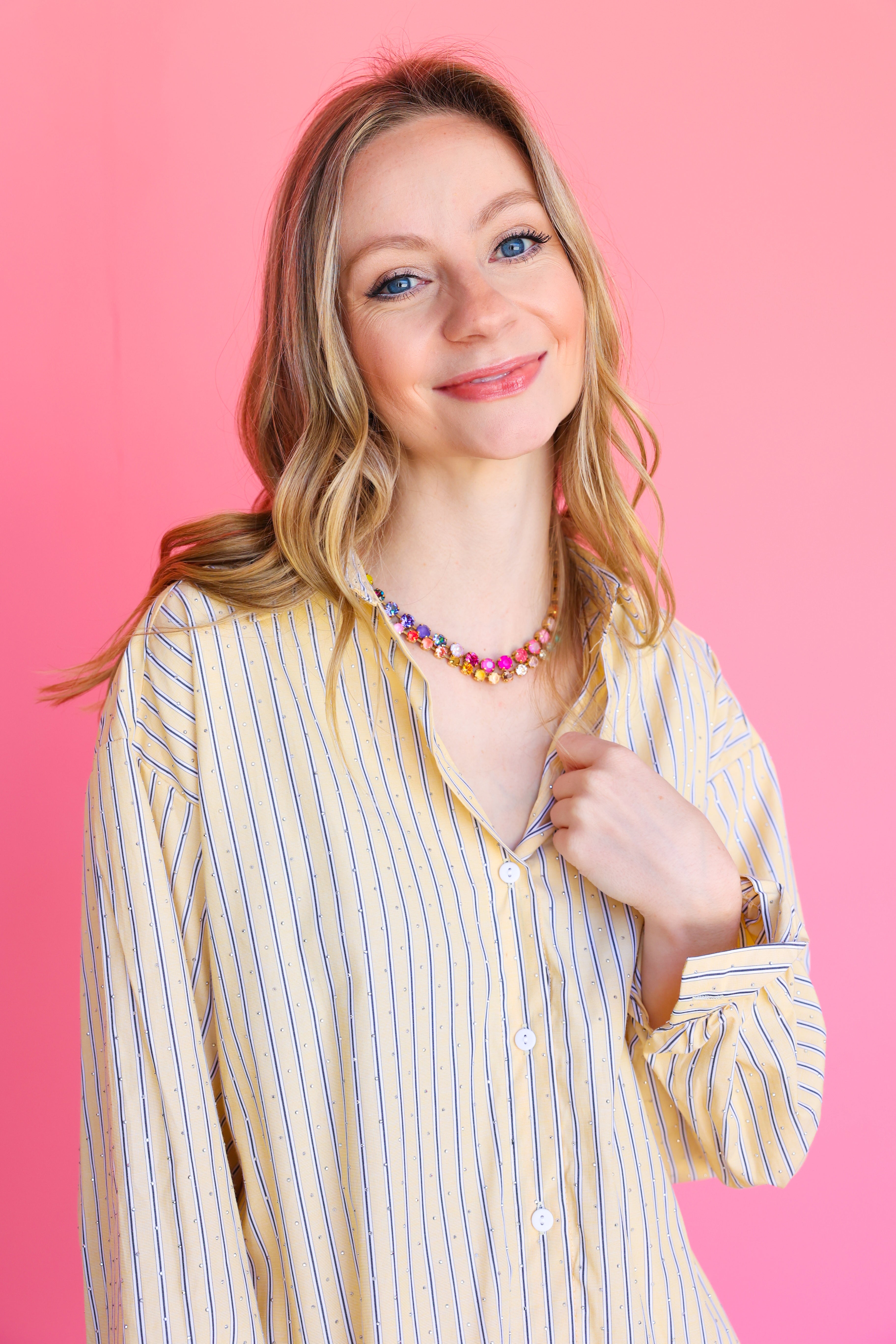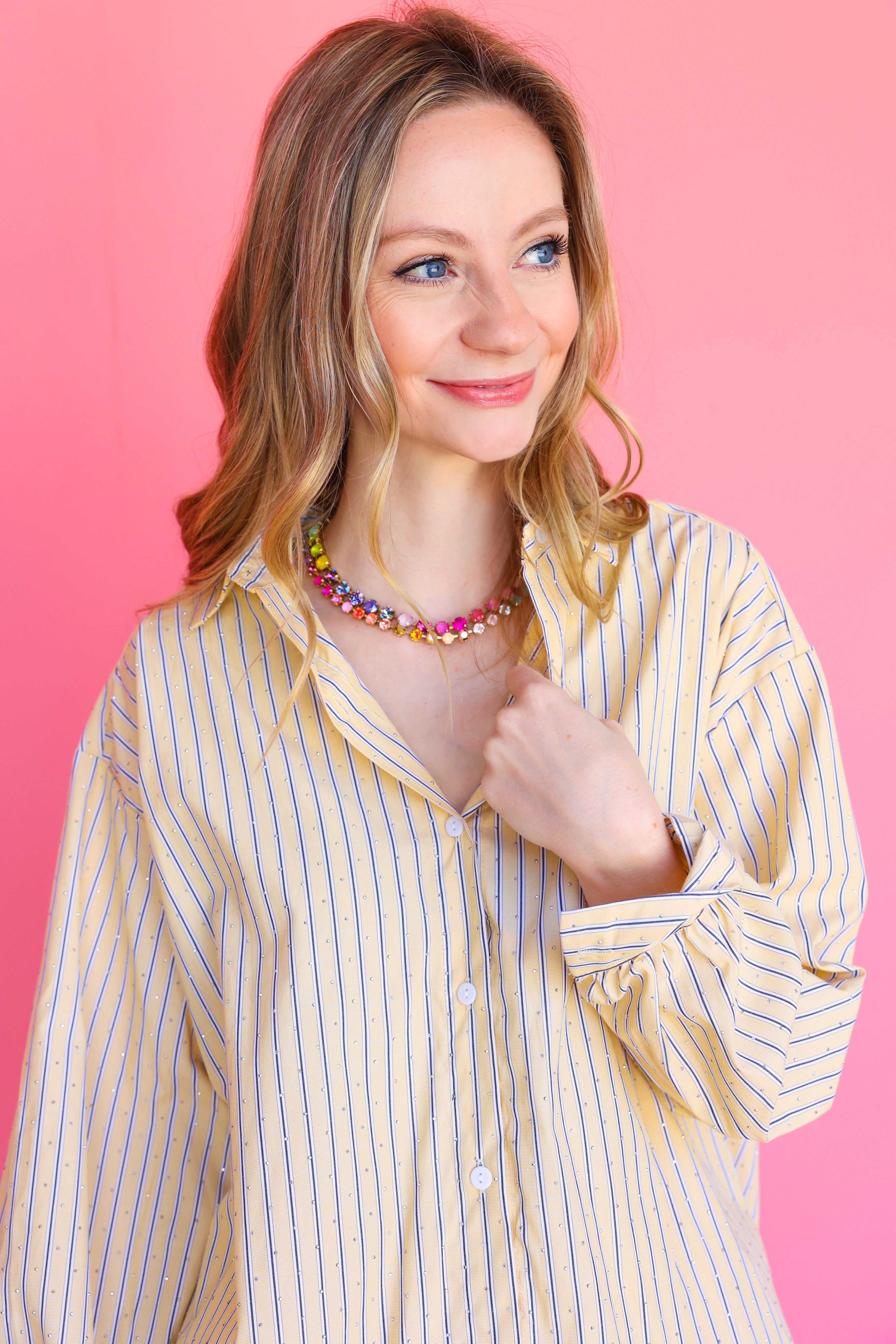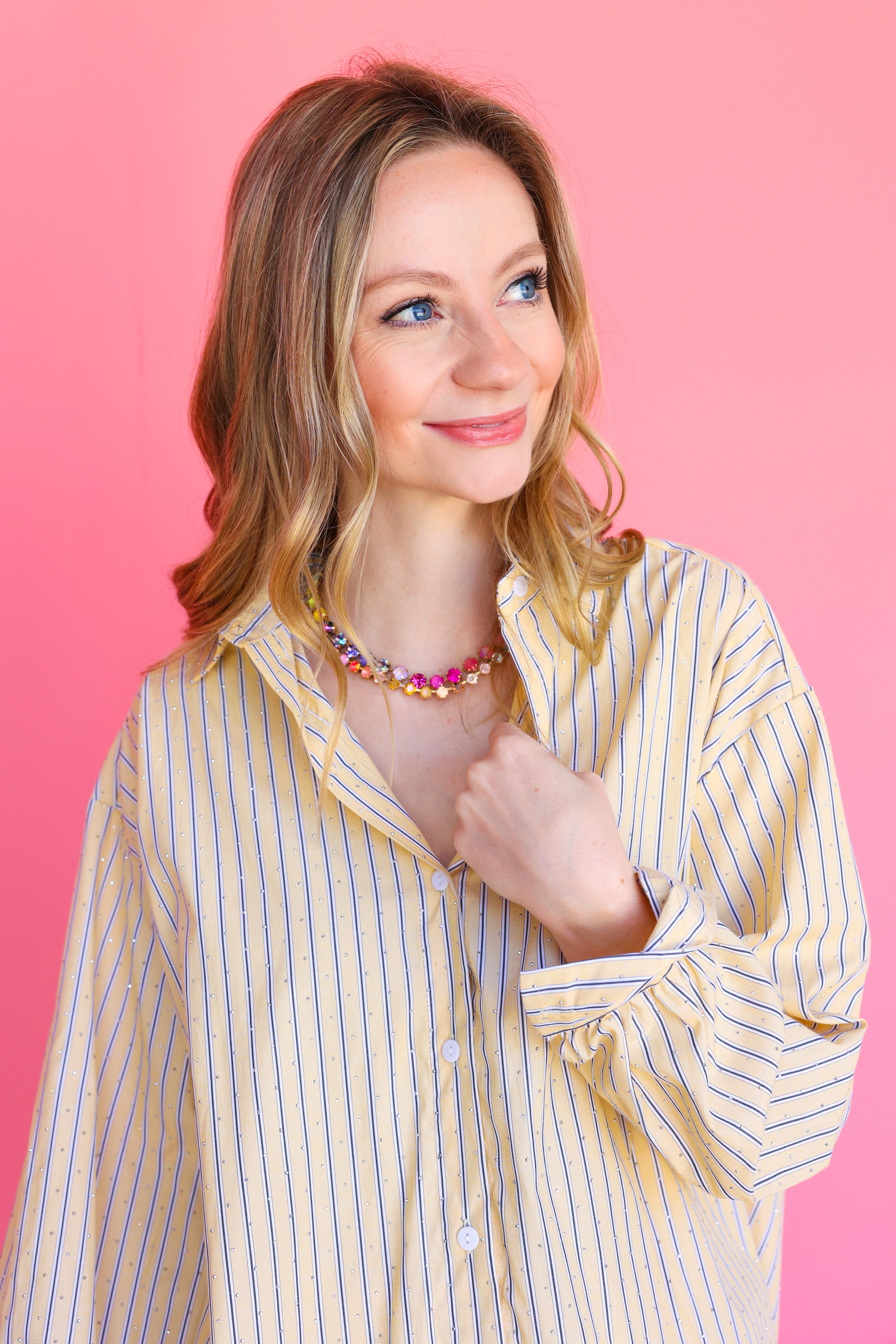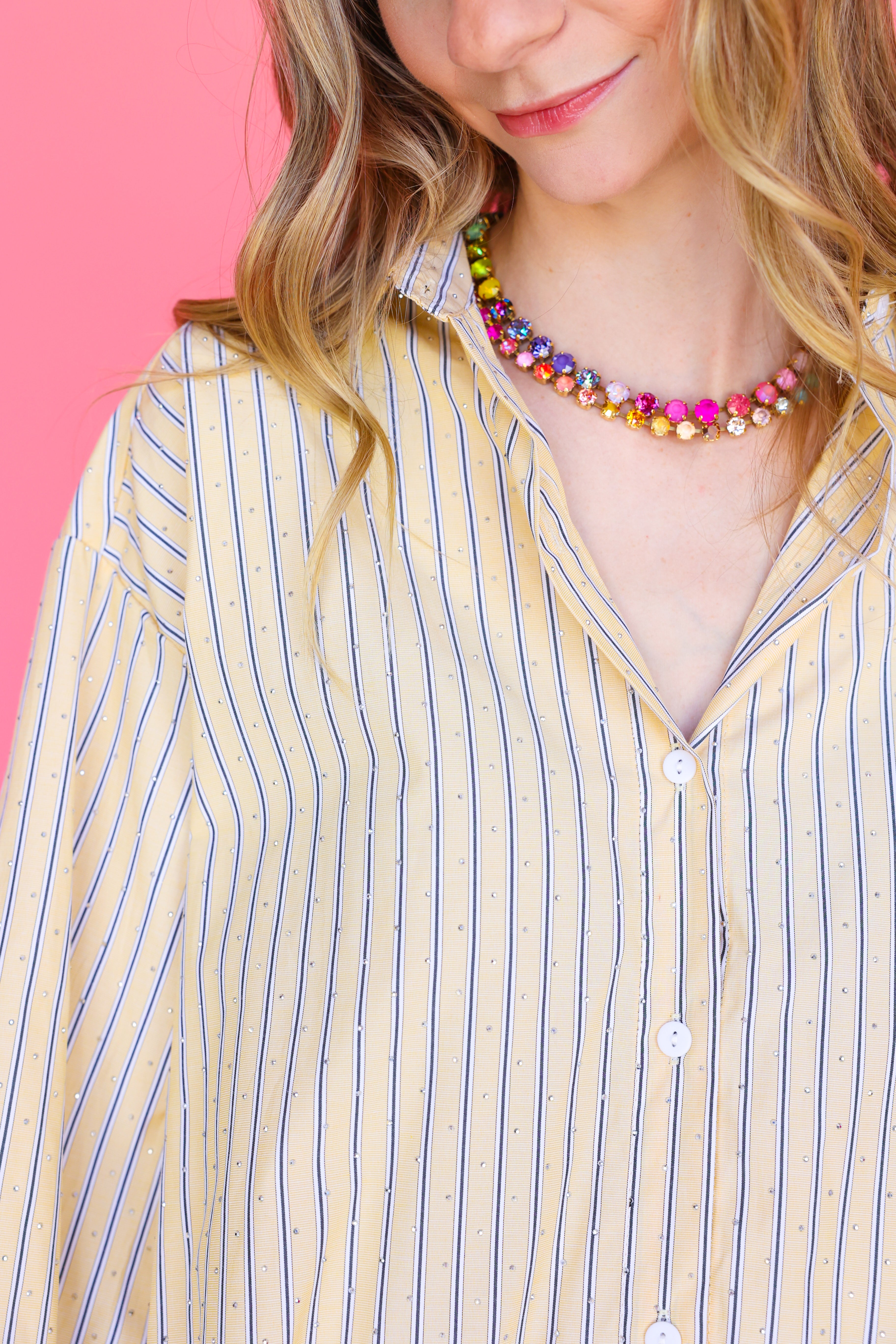 Striped Cotton Button Up Long Sleeve Jeweled Cherry Romper Queen of Sparkles