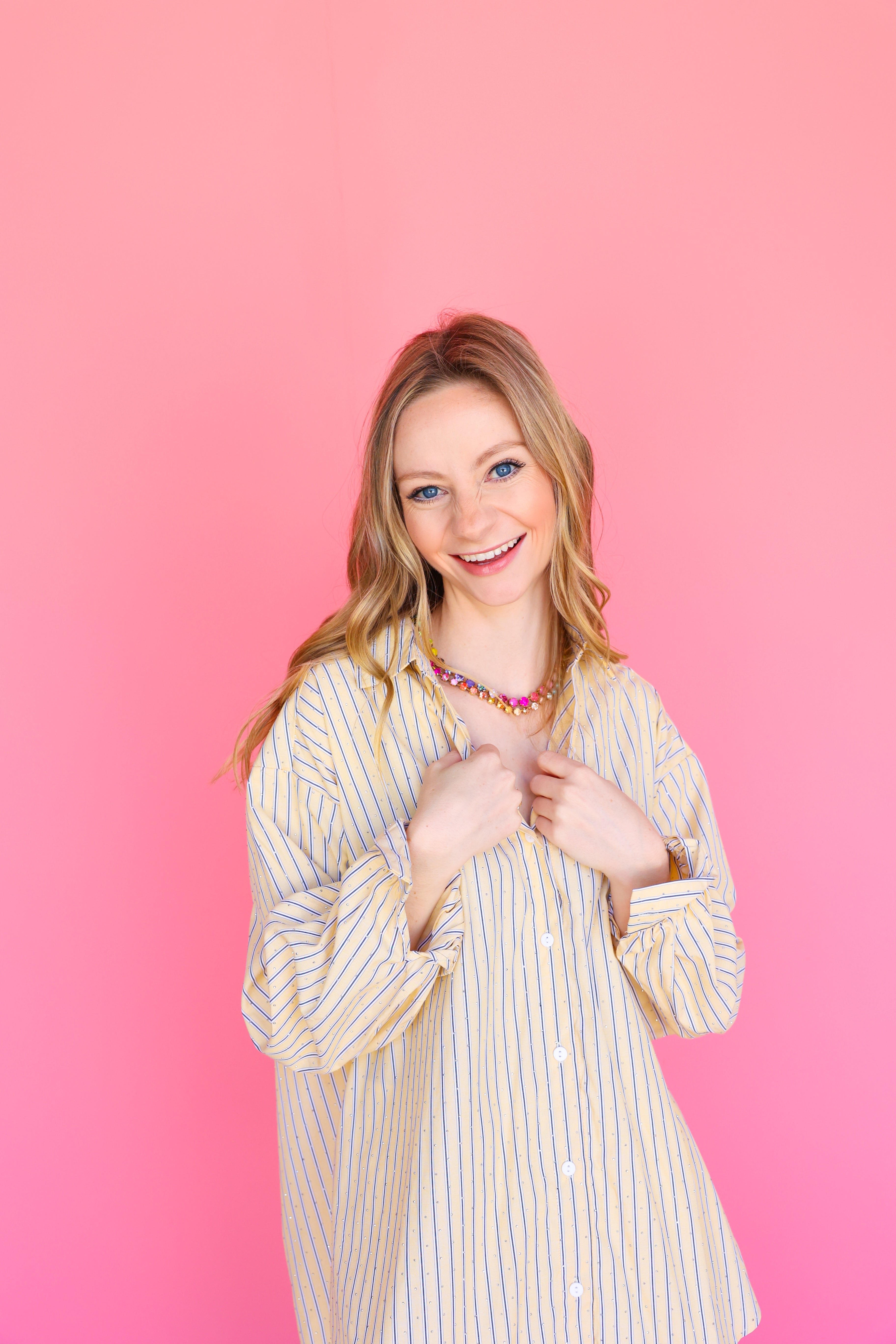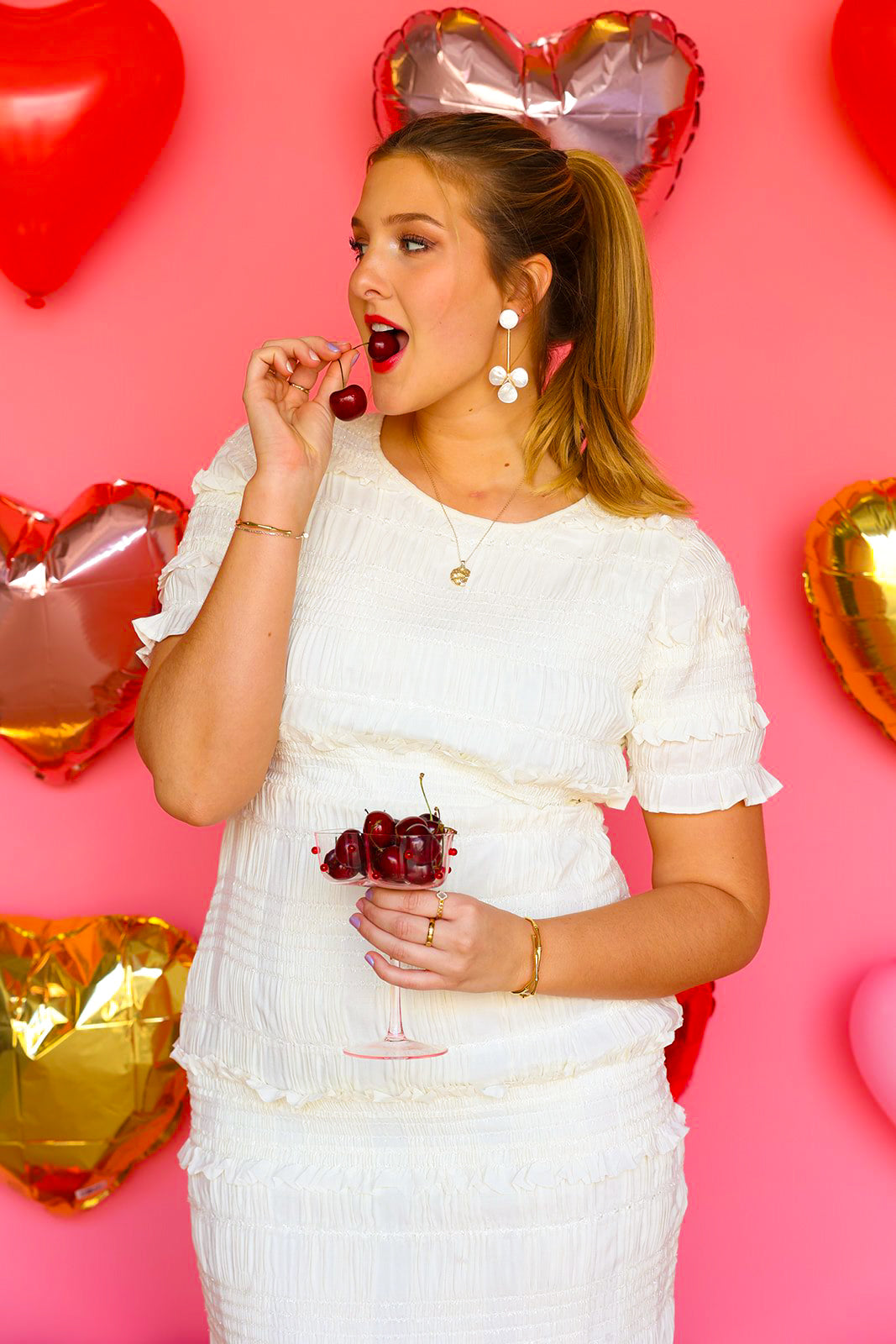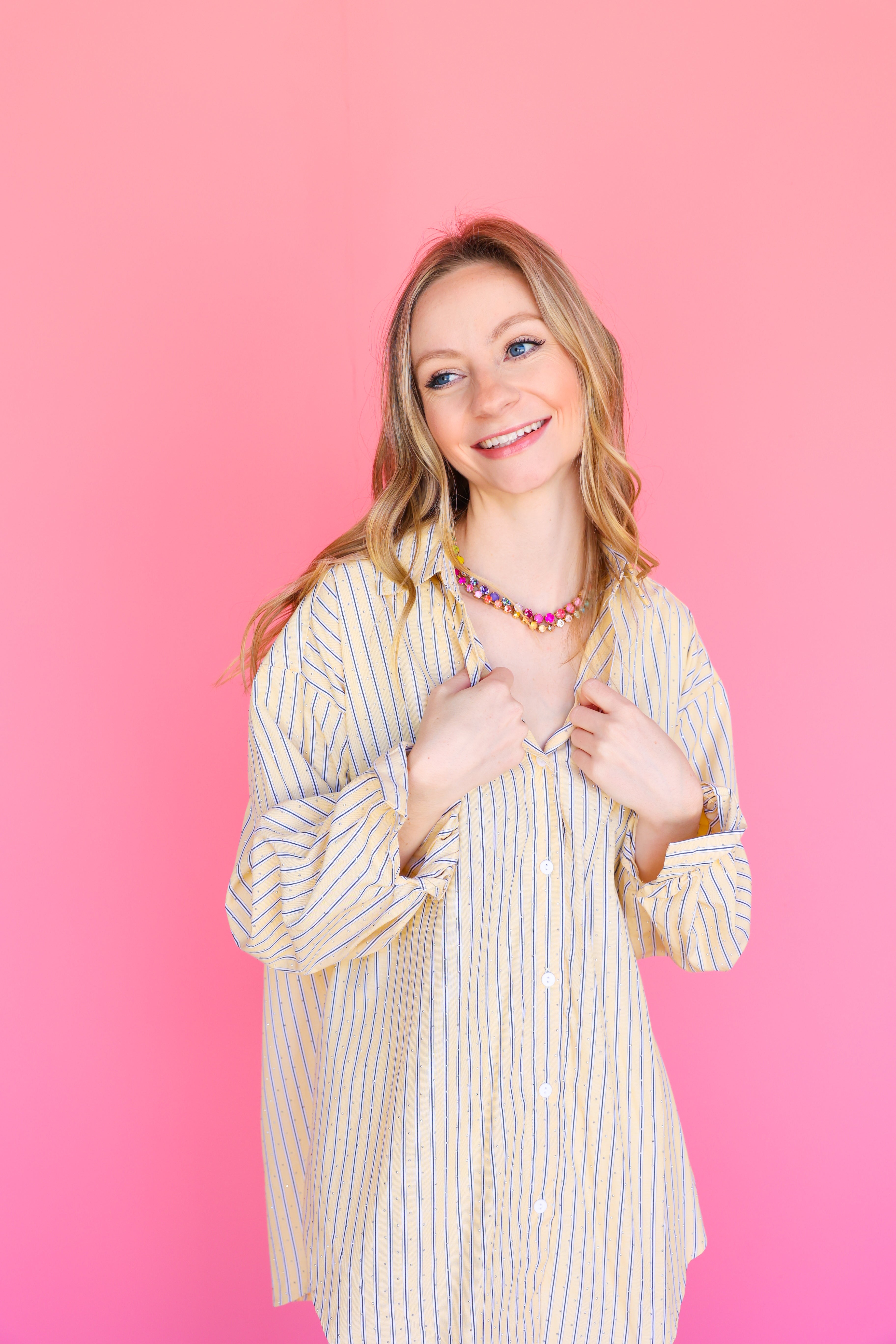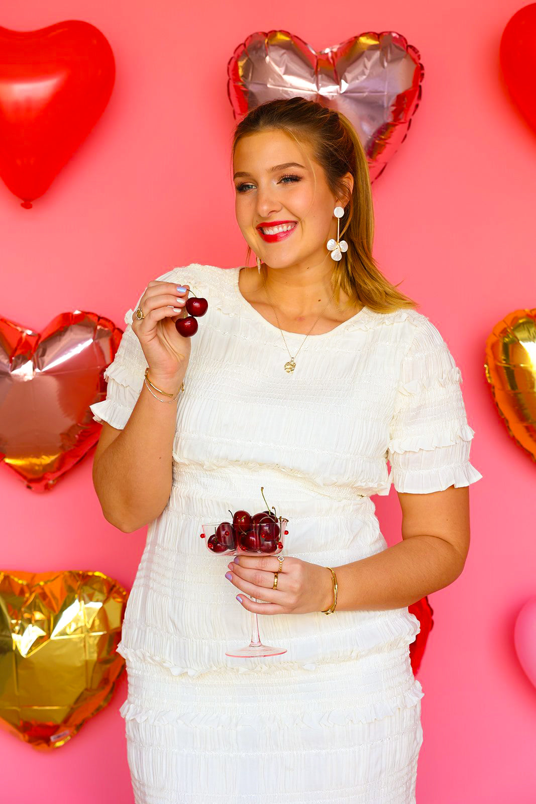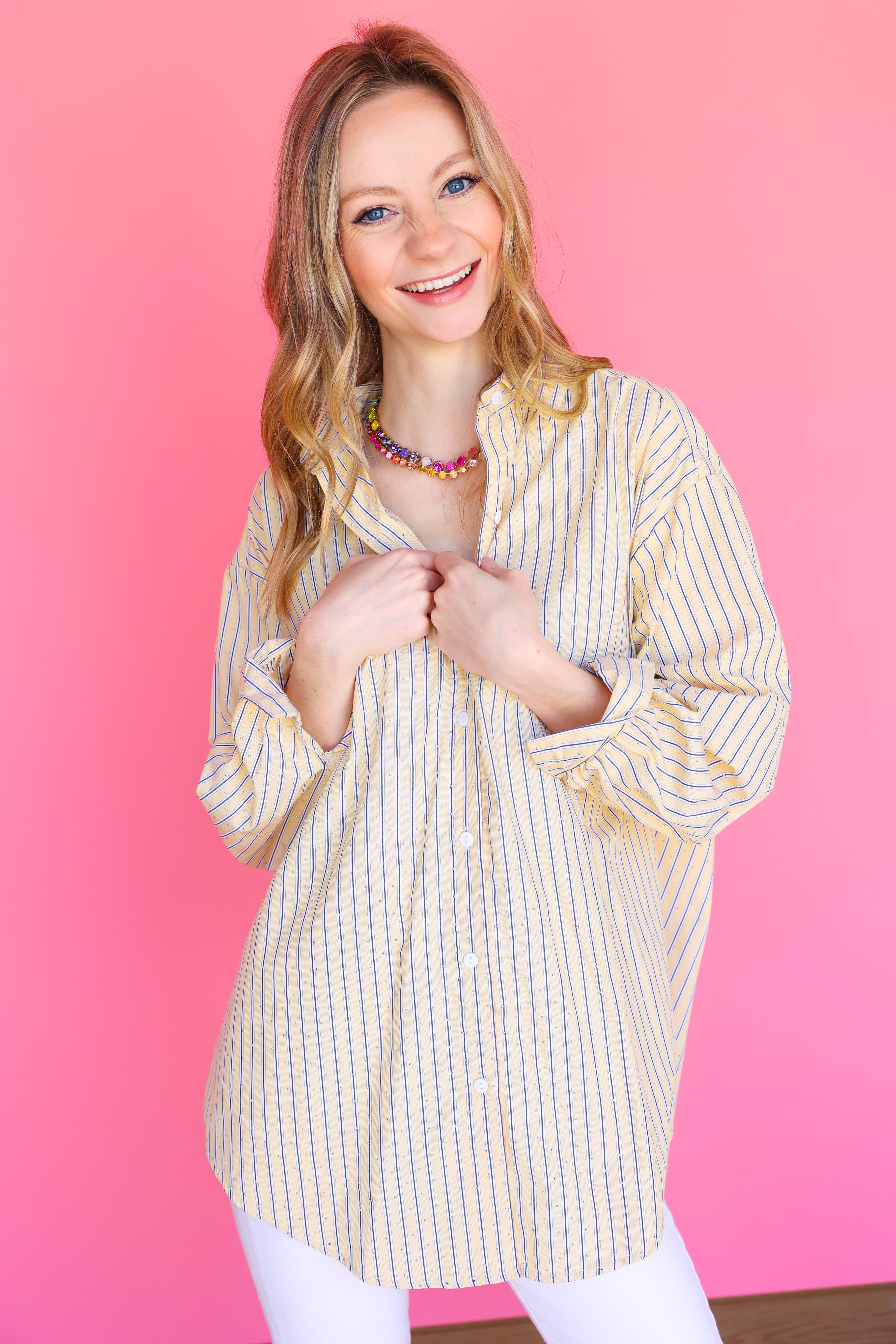 Striped Cotton Button Up Long Sleeve Jeweled Cherry Romper Queen of Sparkles