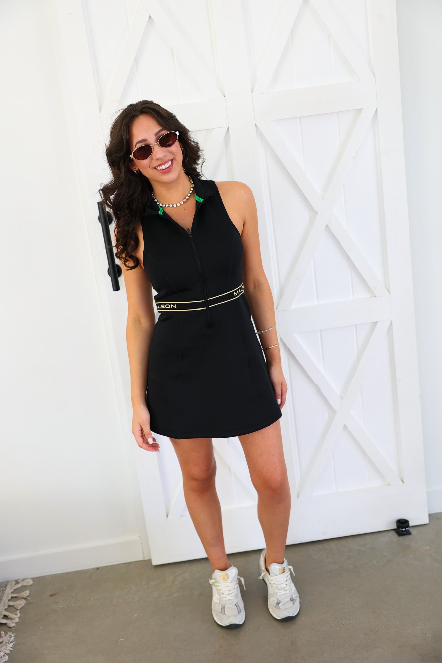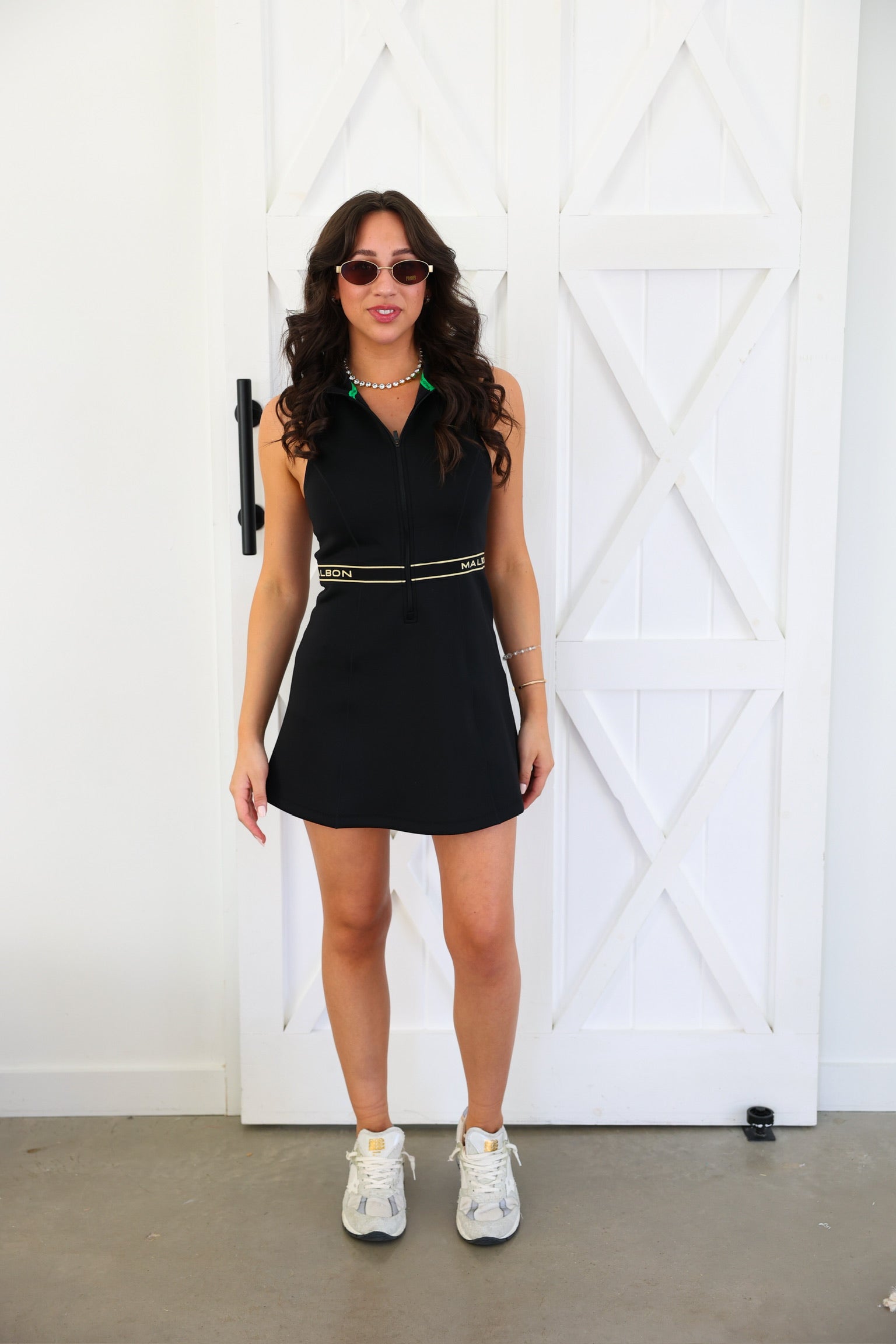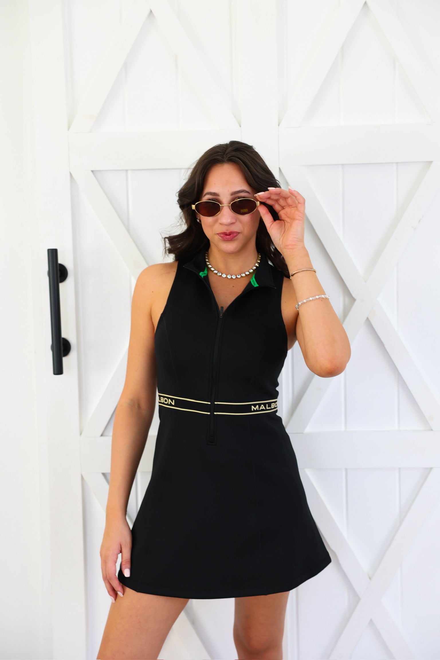 Sporty sophistication meets effortless polish. The Malbon Black Kaleen Dress is a sleek, elevated take on everyday athleisure—designed with clean lines, a flattering silhouette, and that signature Malbon edge. Whether you’re heading to the course, grabbing lunch, or running around town, this dress keeps you looking put-together without sacrificing comfort.