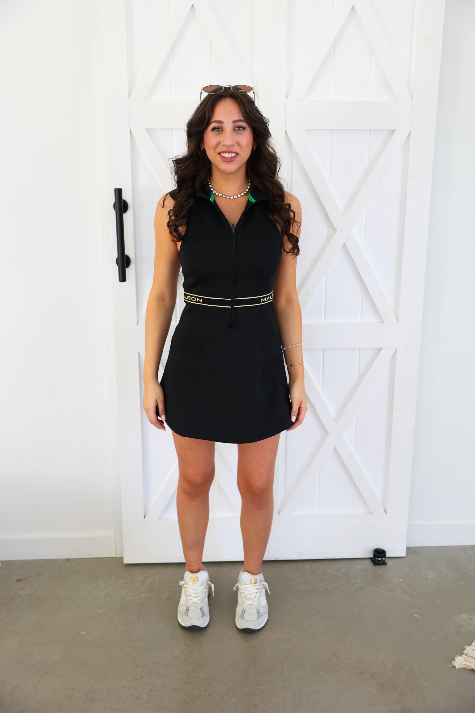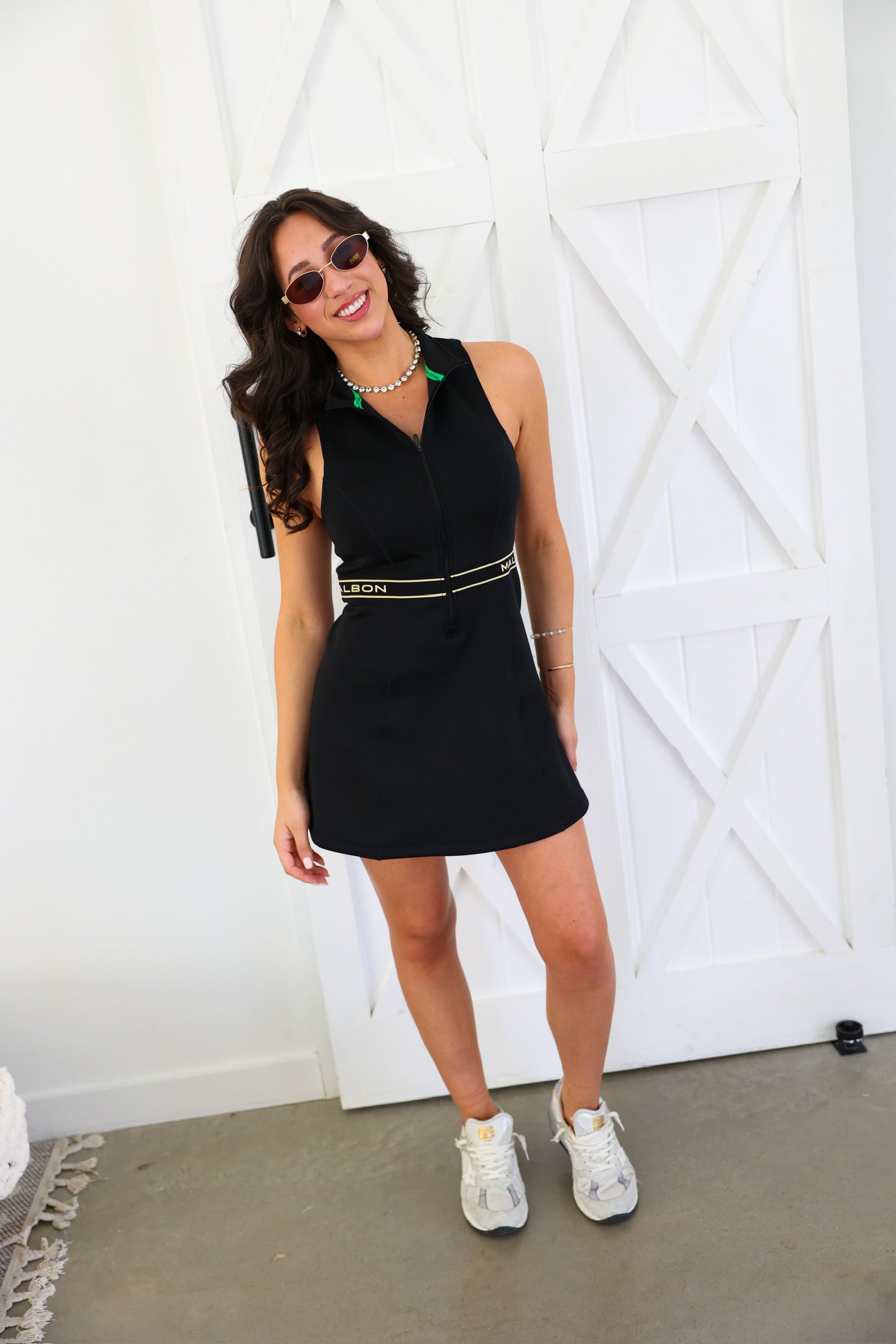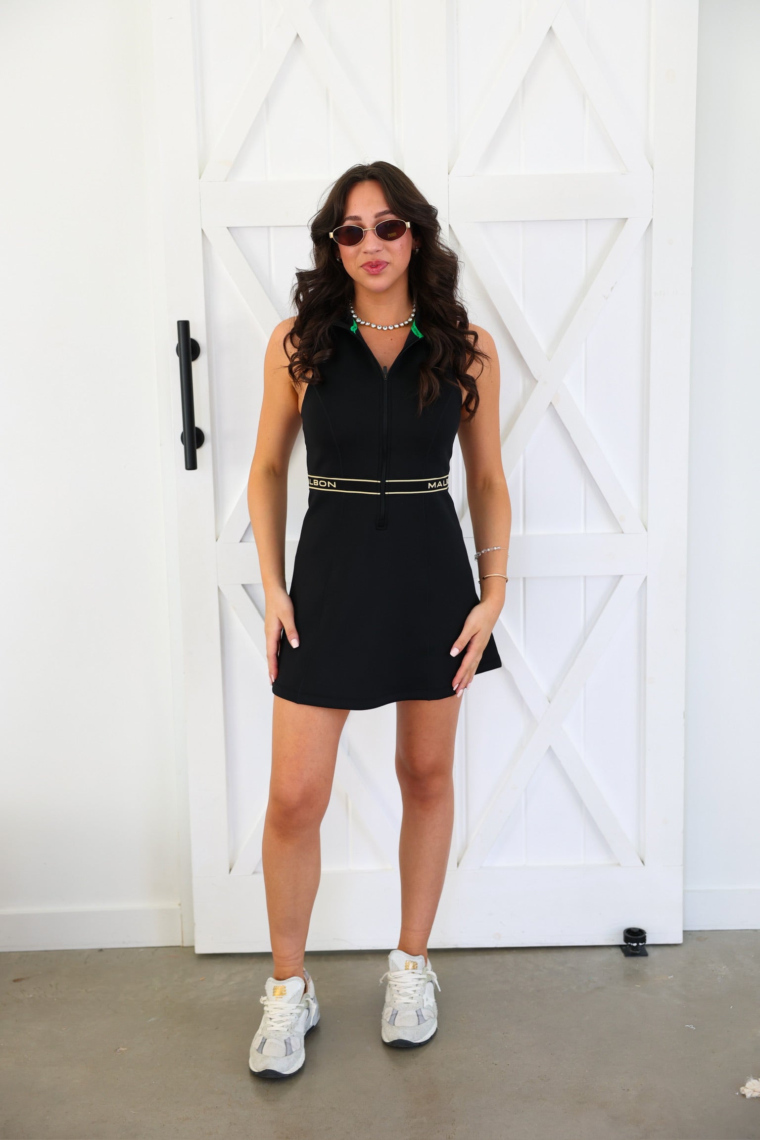 Sporty sophistication meets effortless polish. The Malbon Black Kaleen Dress is a sleek, elevated take on everyday athleisure—designed with clean lines, a flattering silhouette, and that signature Malbon edge. Whether you’re heading to the course, grabbing lunch, or running around town, this dress keeps you looking put-together without sacrificing comfort.