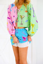 Elevate your style with the Multi Colorblock Gingham Martini Skirt by Queen of Sparkles. This eye-catching piece combines vibrant color blocking with timeless gingham detailing for a look that's both playful and polished. Crafted from quality cotton, it offers comfort without compromising on style. The flattering silhouette works beautifully for brunch dates, weekend adventures, or any occasion where you want to stand out. Mix and match with your favorite tops to create endless outfit combinations that showcase your bold, confident fashion sense.