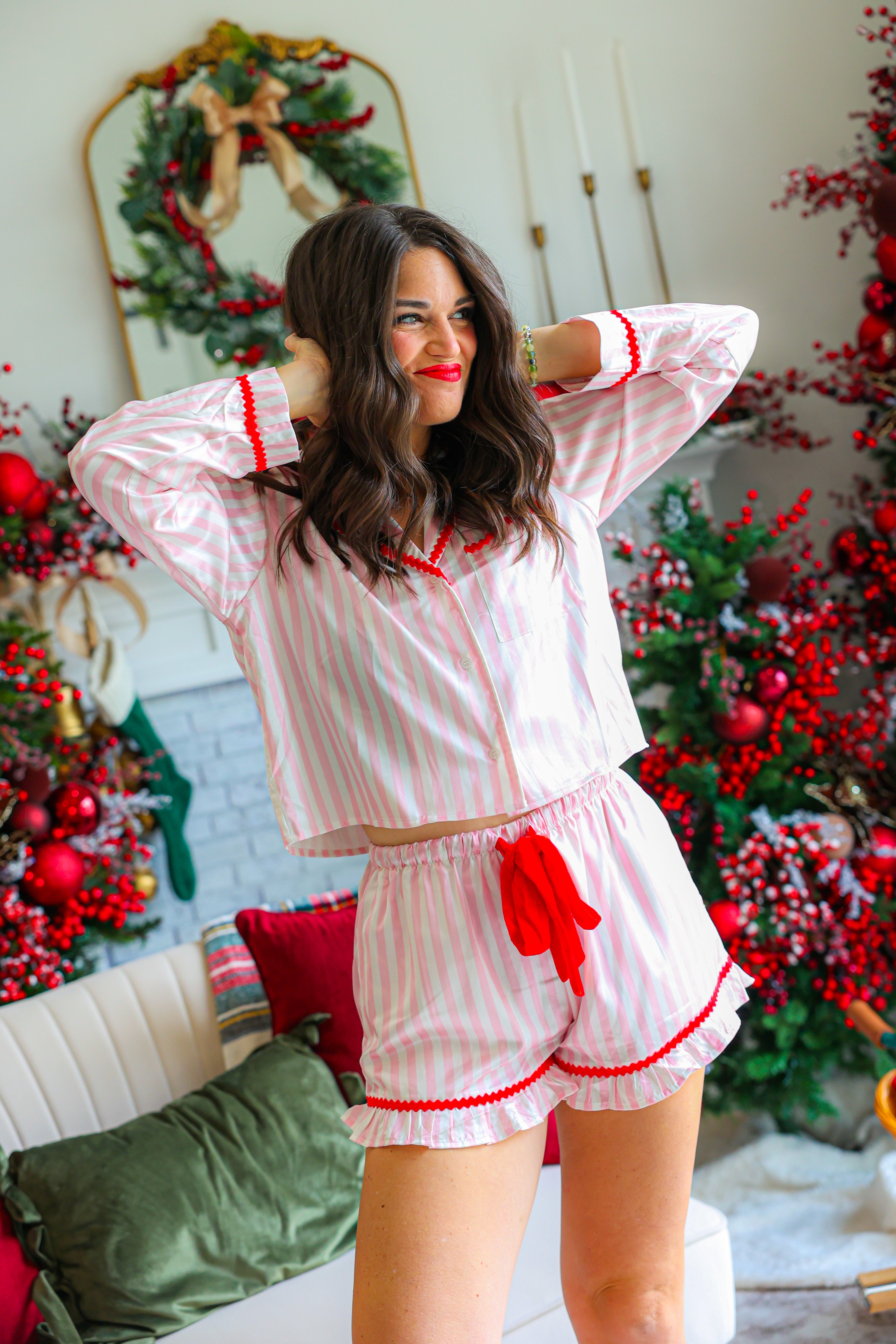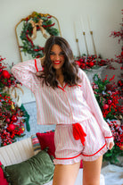 Add a cheerful pop of color to your holiday nights with the Merry & Bright PJ Set in pink. This festive set blends soft, cozy fabric with an uplifting design that keeps you comfortable while spreading seasonal joy. Perfect for cozy evenings or holiday mornings, it’s the ideal way to stay merry and bright all season long.
