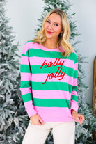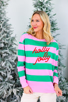 Pink "Holly Jolly" Striped Classic Sweatshirt