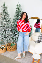 Red "Merry" Diagonal Striped Classic Sweatshirt