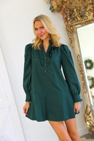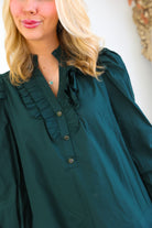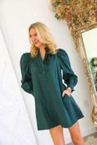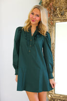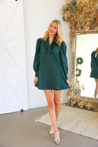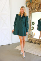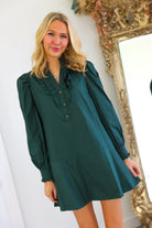 This emerald green mini dress is the perfect blend of timeless elegance and festive charm. Designed with a flattering A-line silhouette, ruffle-trimmed neckline, and feminine puff sleeves, it’s the dress you’ll reach for all season long. Whether you're headed to a Christmas gathering, holiday party, family photos, or a winter date night, this chic mini delivers effortless style with zero fuss — and yes, it’s true to size.