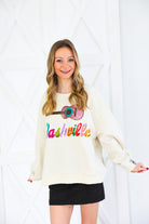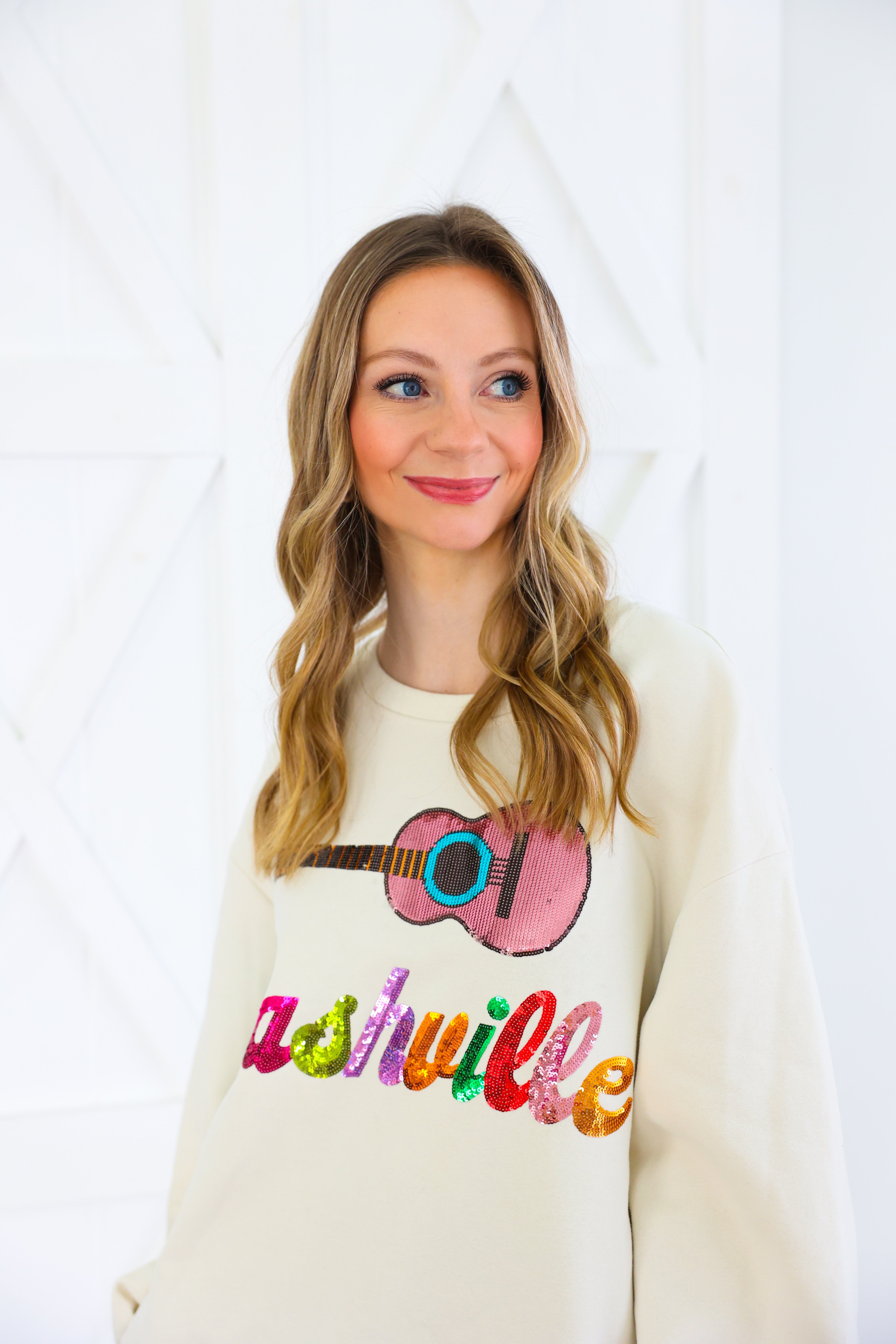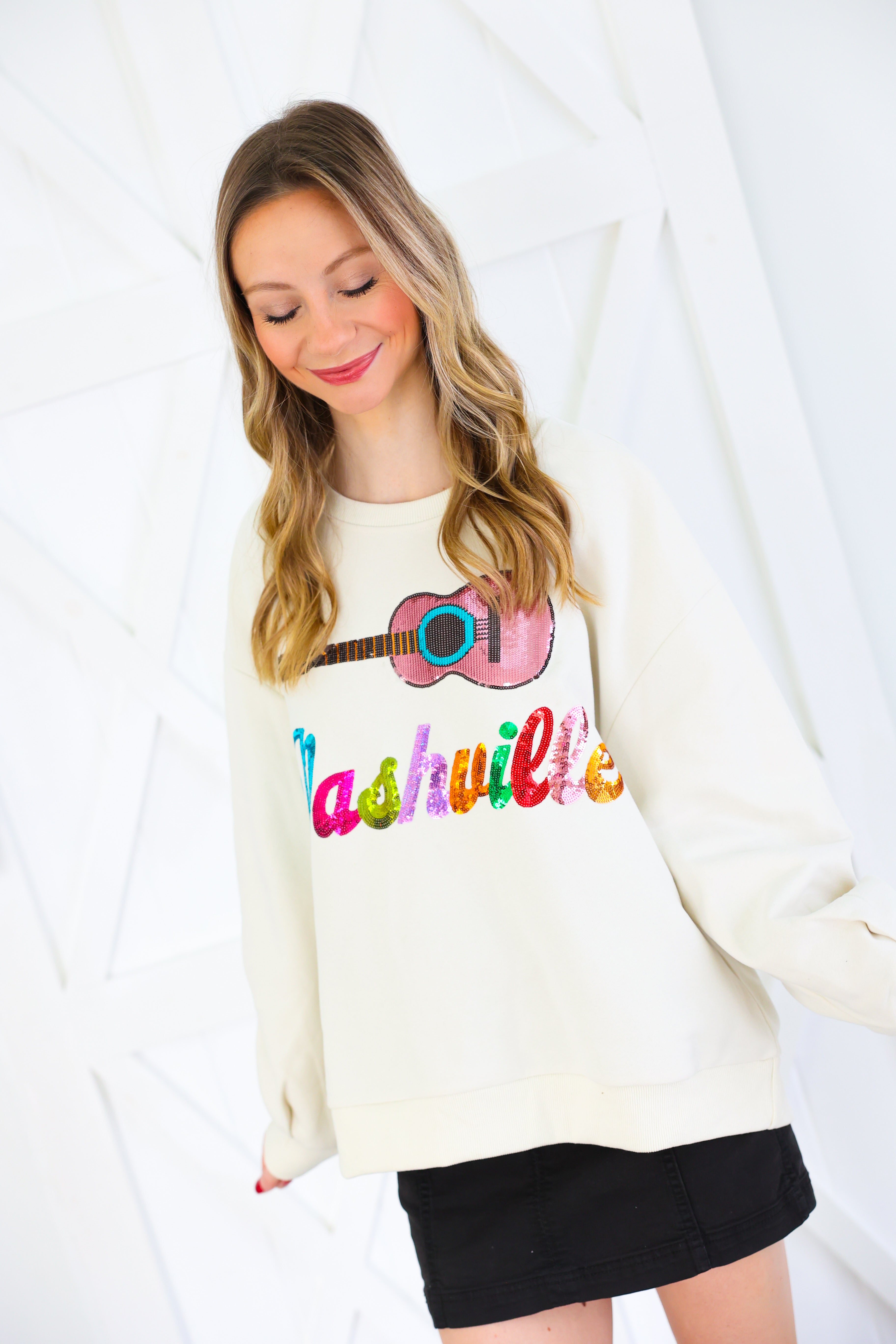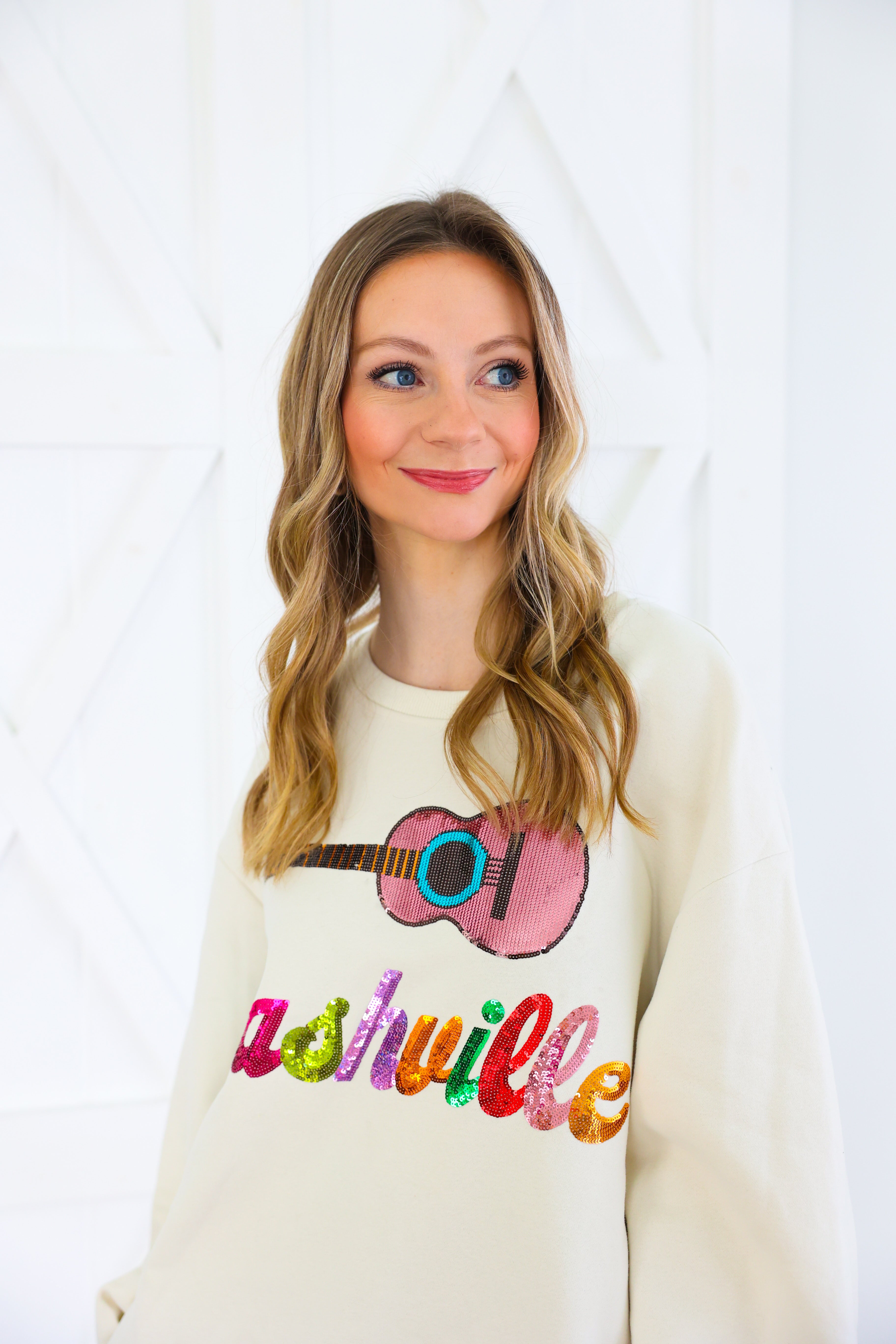 Light beige sweatshirt with multicolor sequin “Nashville” lettering 🌈