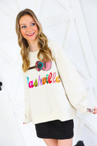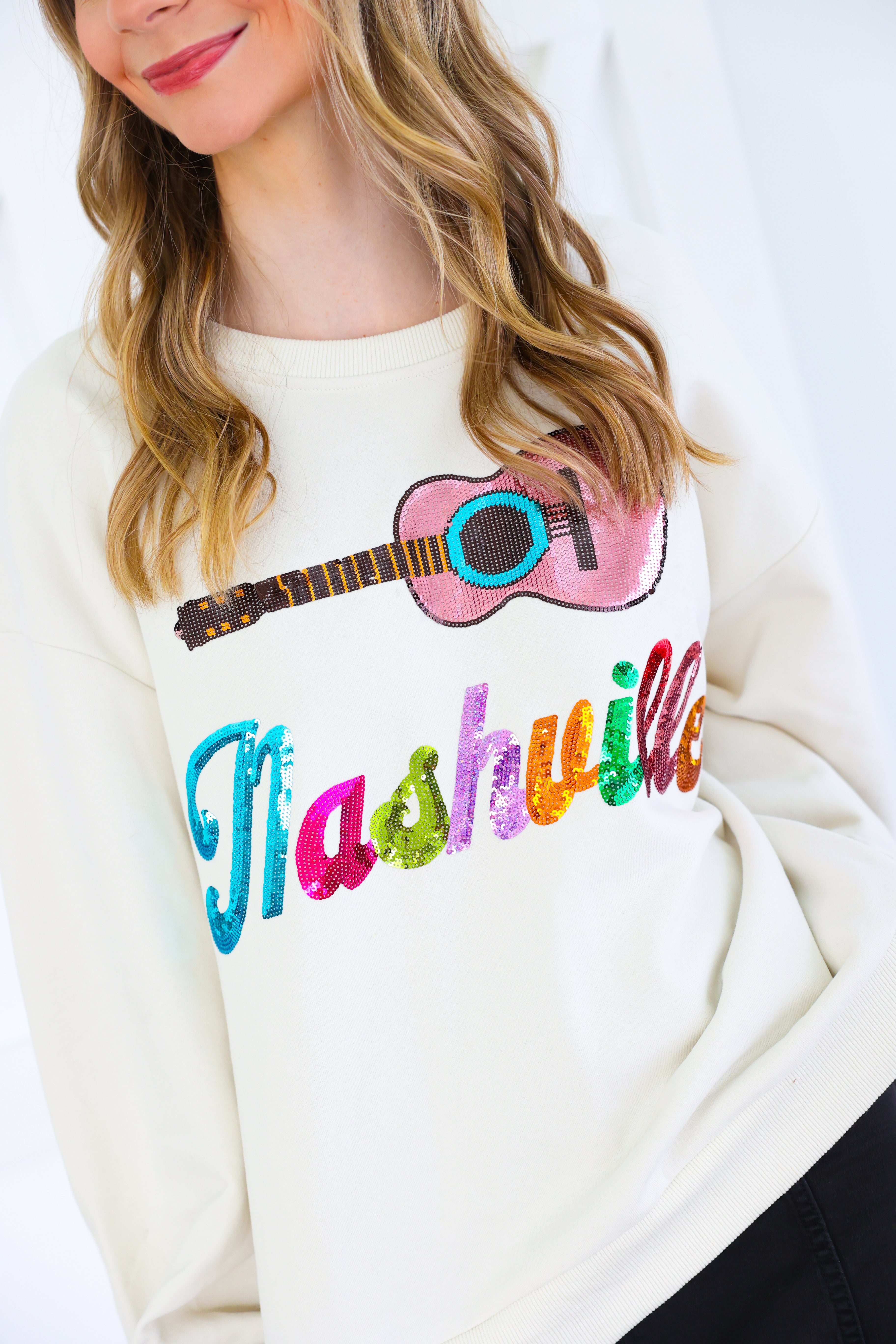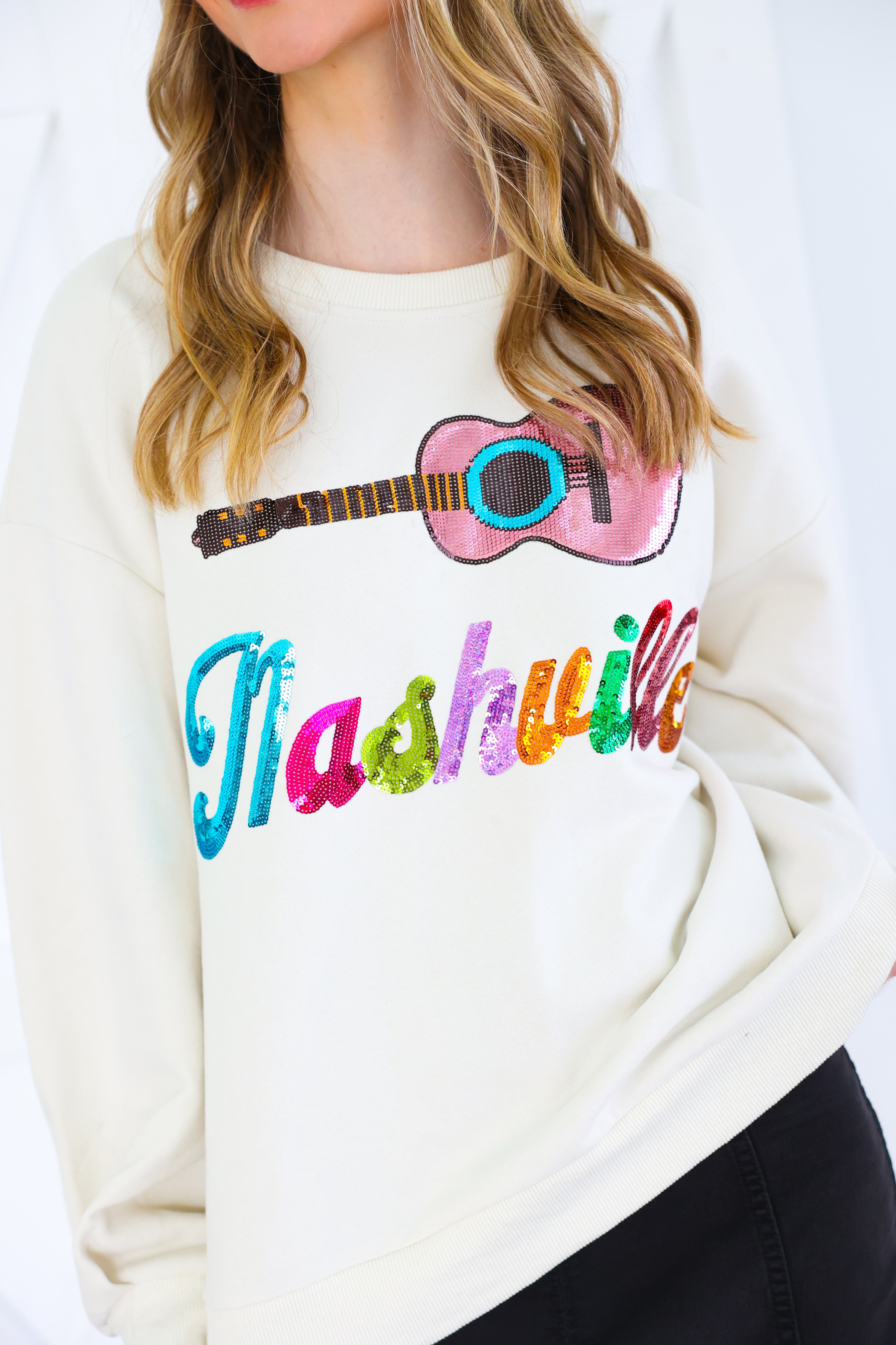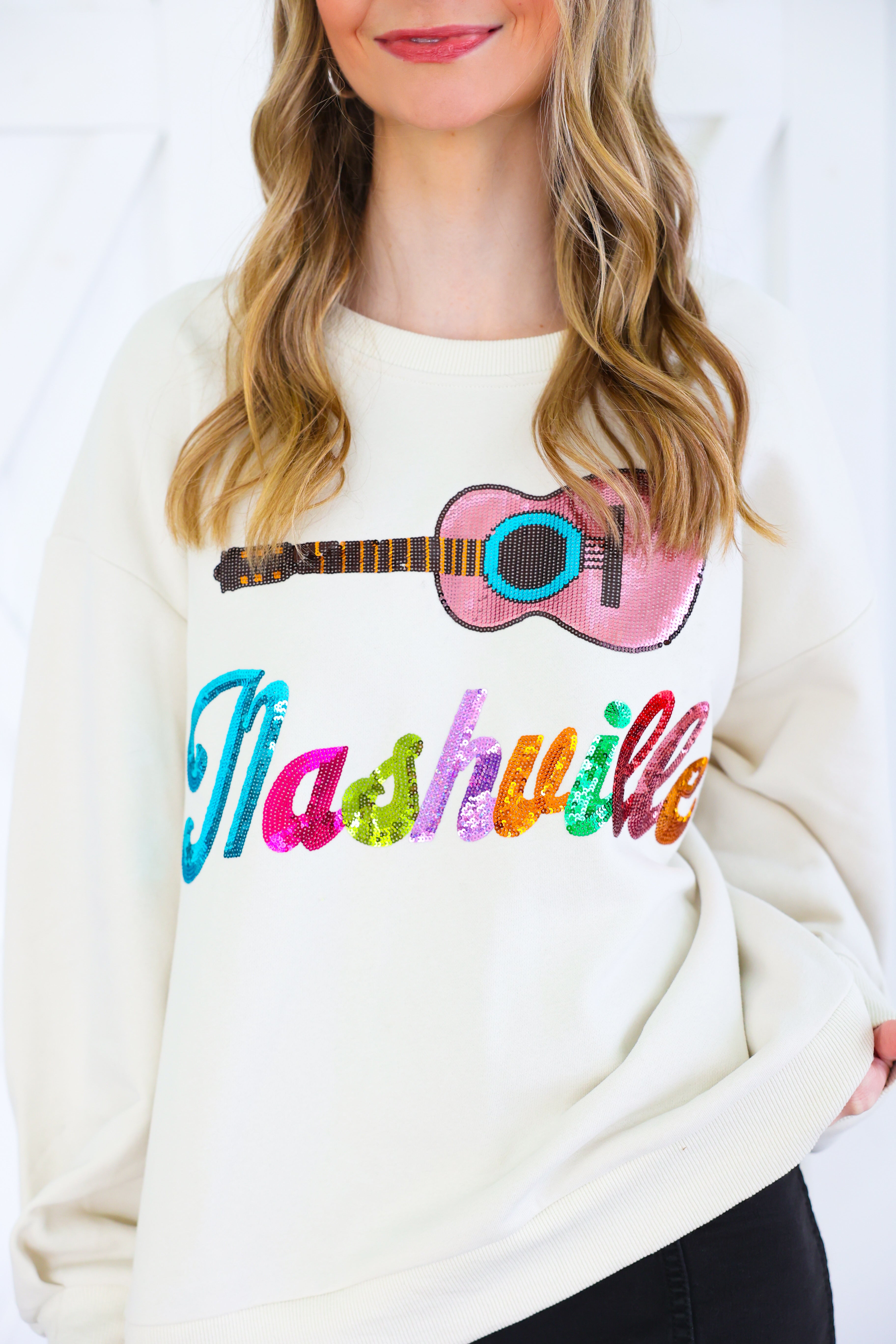 Light beige sweatshirt with multicolor sequin “Nashville” lettering 🌈