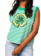 Queen of Sparkles Green Striped Shamrock Knit Tank