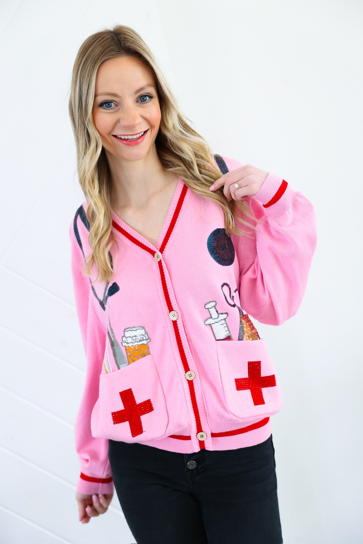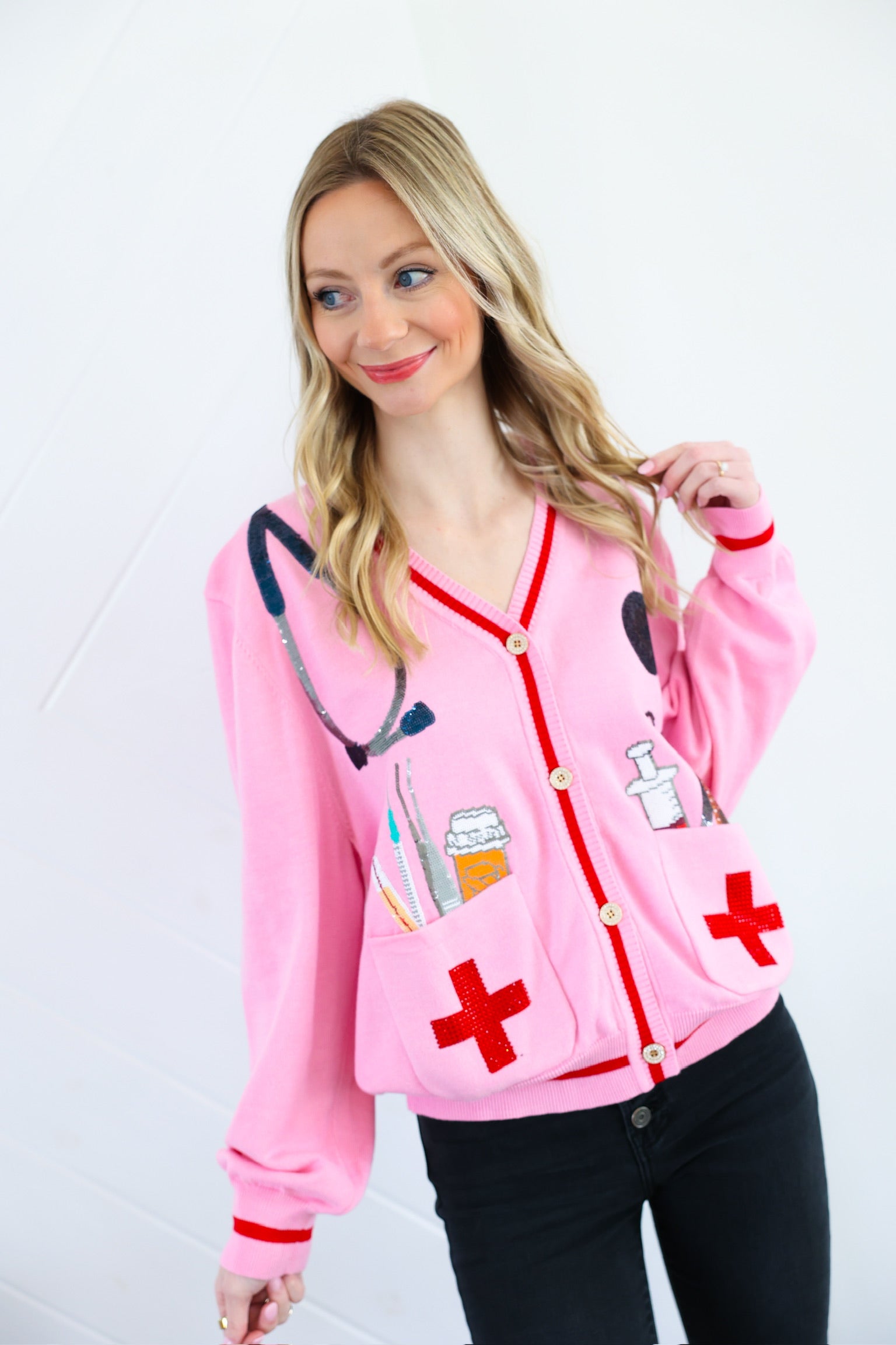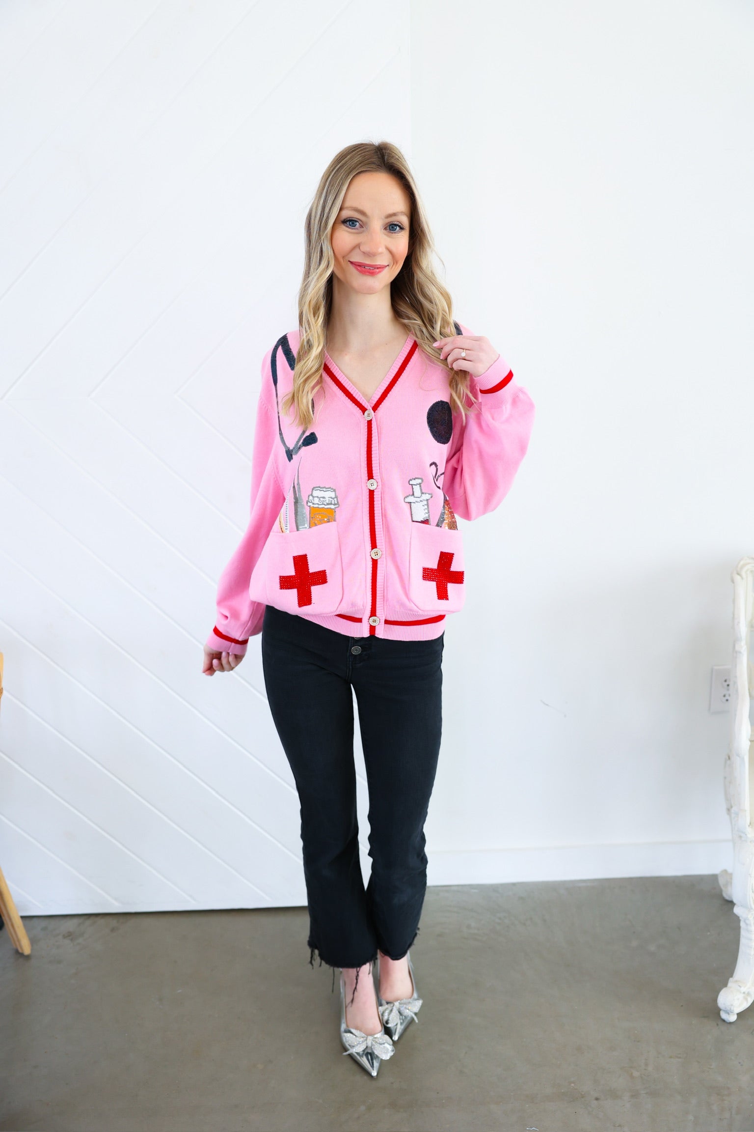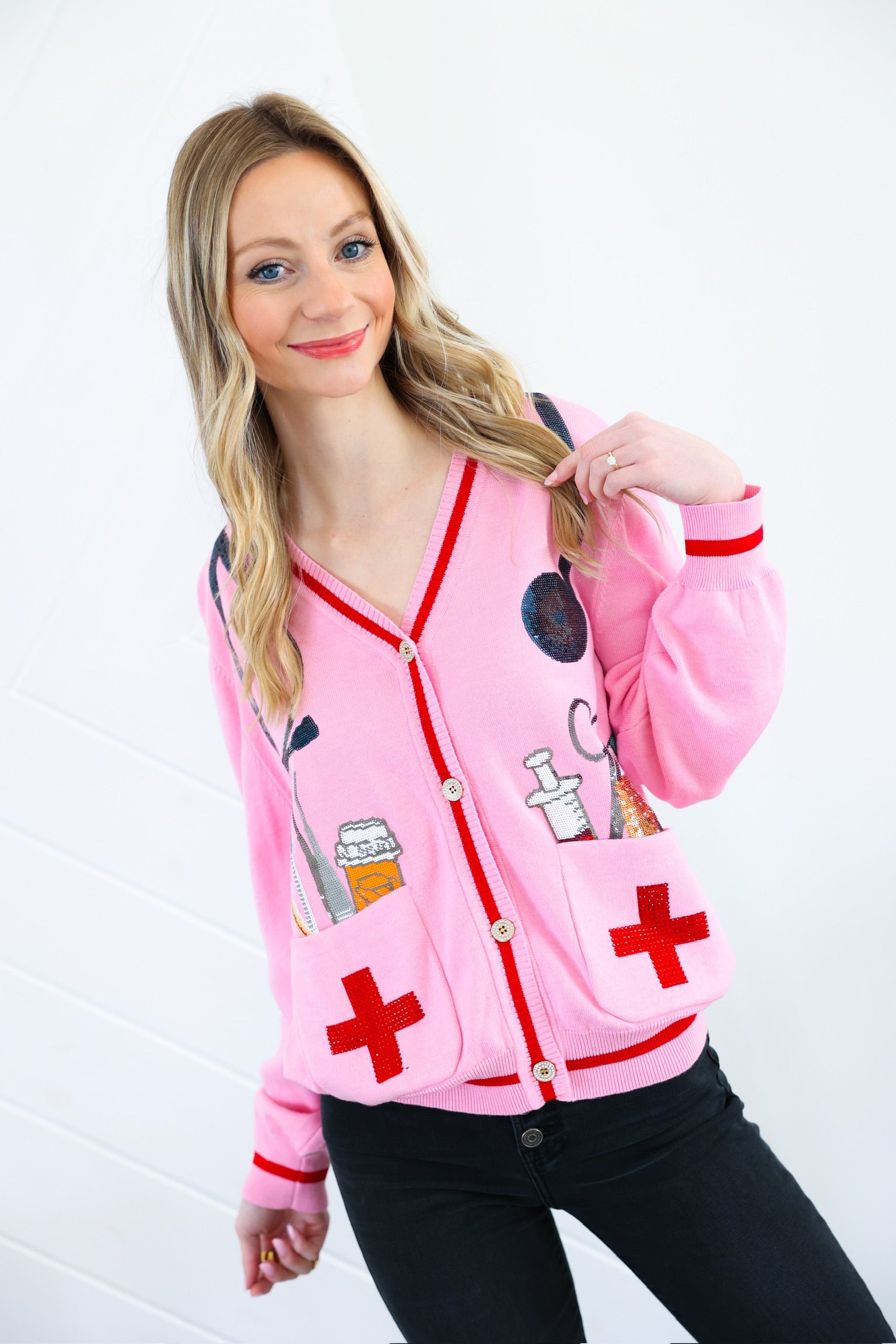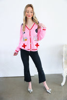 Pink Medical Instrument Button Up Cardigan Queen of Sparkles