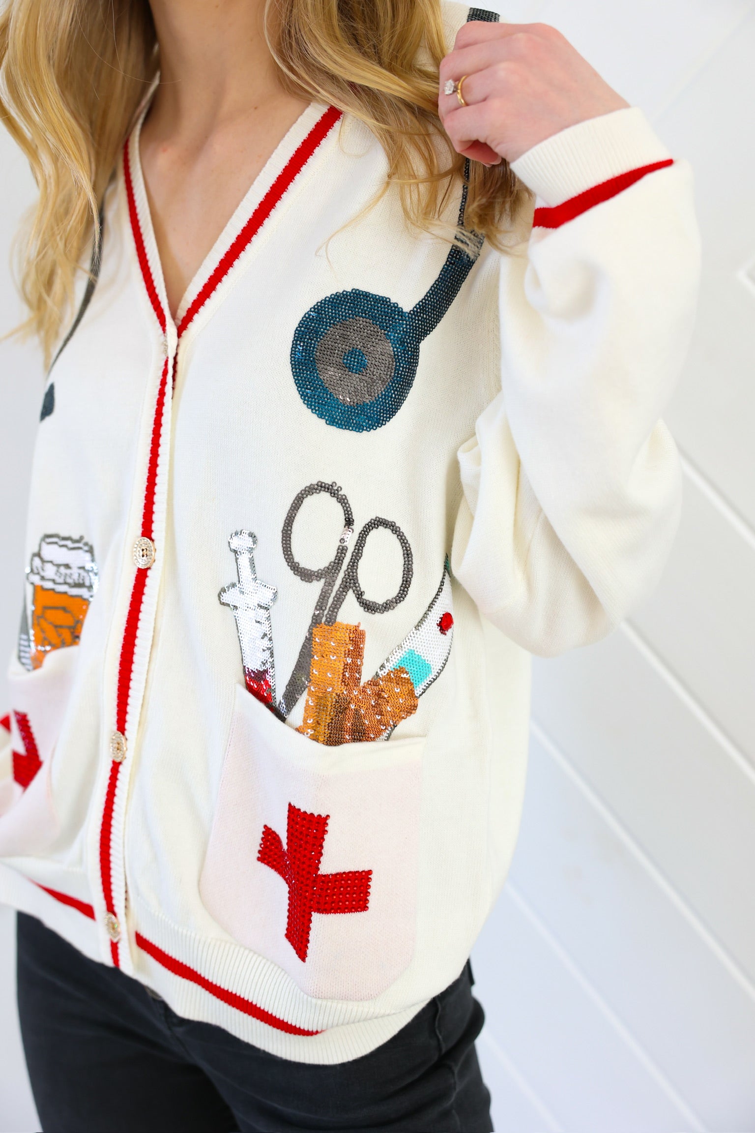 White Medical Instrument Button Up Cardigan Queen of Sparkles
