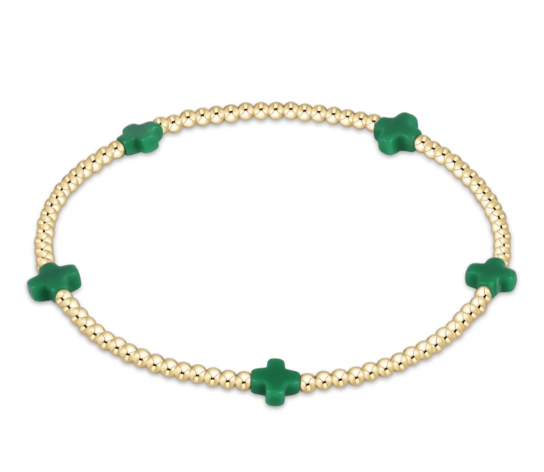 enewton Signature Cross Small Gold Pattern 2mm Bead Bracelet – Emerald