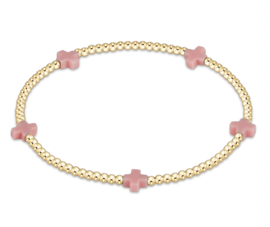 enewton Signature Cross Small Gold Pattern 2mm Bead Bracelet – Pink