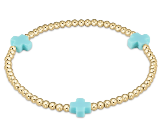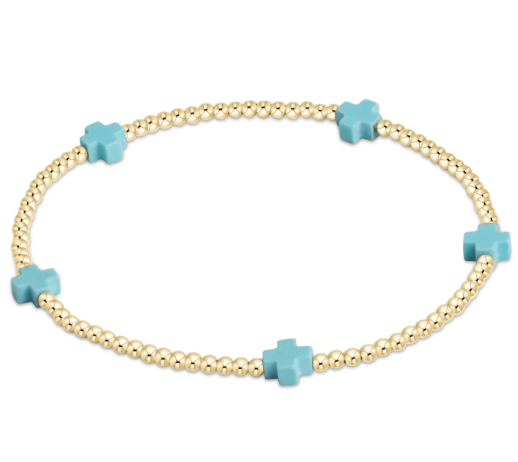 enewton Signature Cross Small Gold Pattern 2mm Bead Bracelet – Turquoise