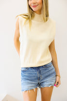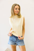 Off White Sleeveless Mock Neck Sweater - Elan