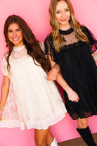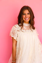 Lace Flutter Sleeve Mock Neck Mini Dress - Cream