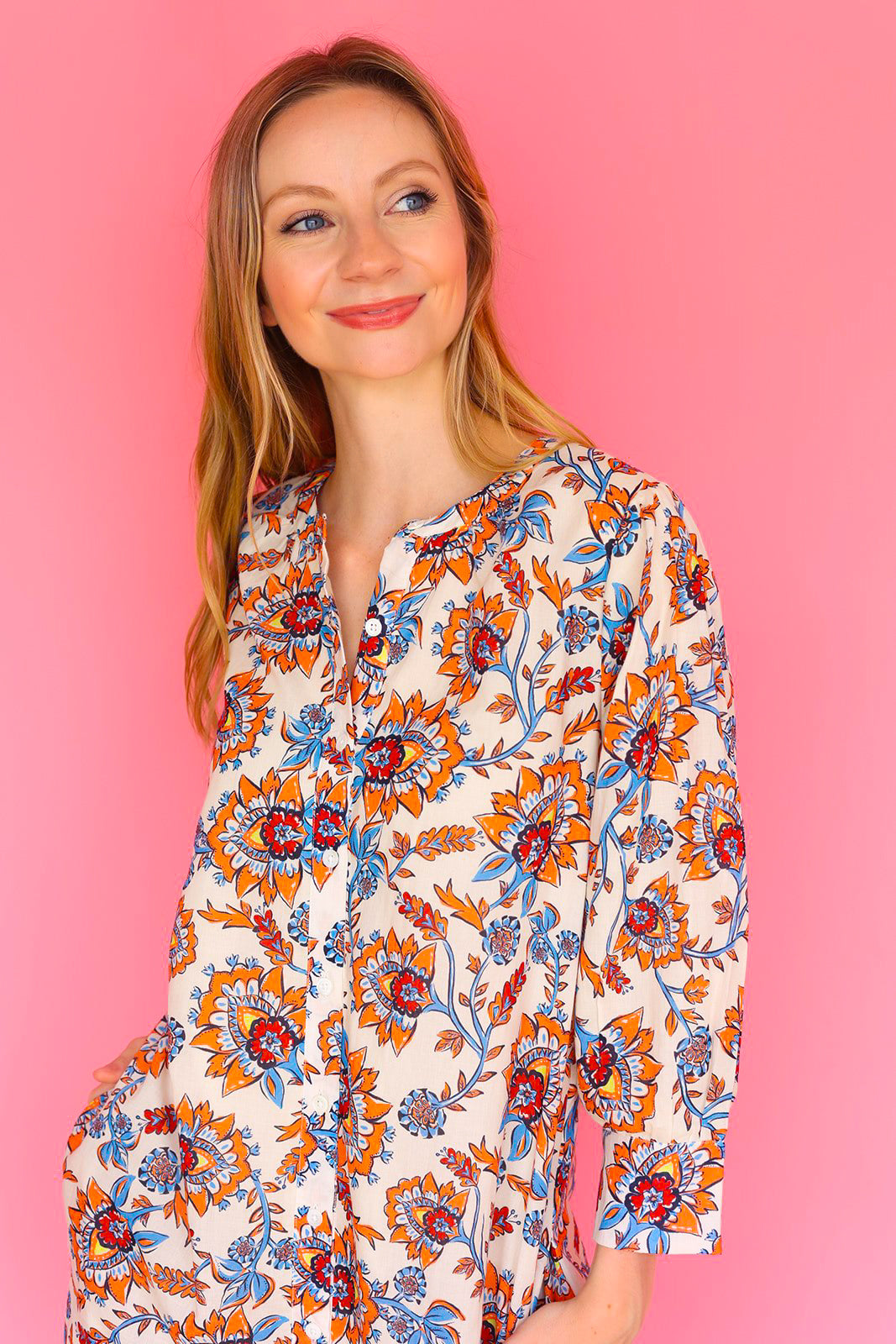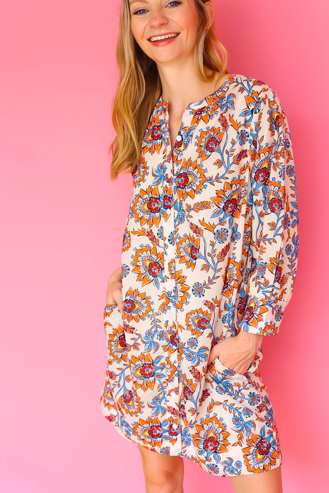 KARLIE Ivory Digital Floral Ruffle Smock Maxi Dress