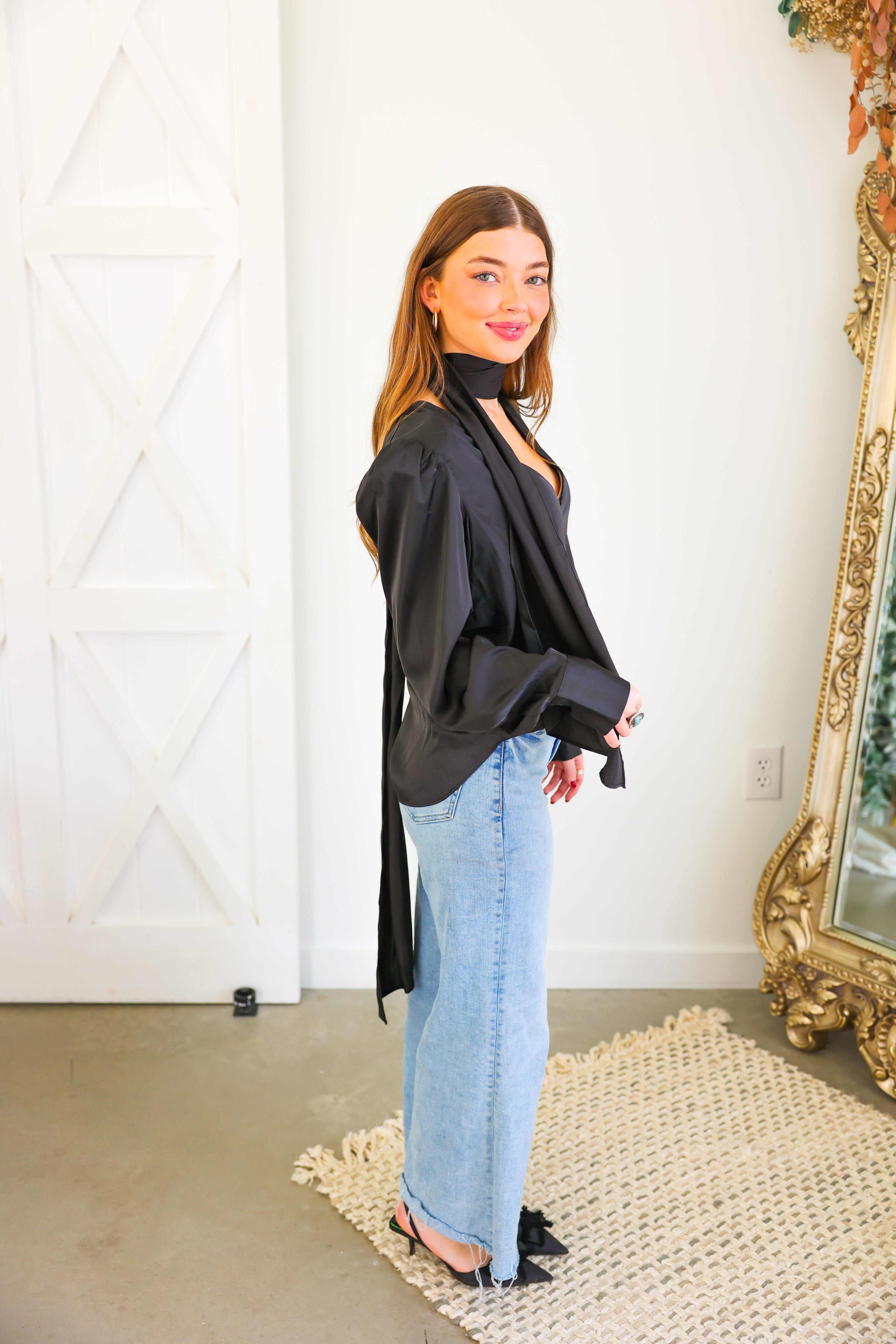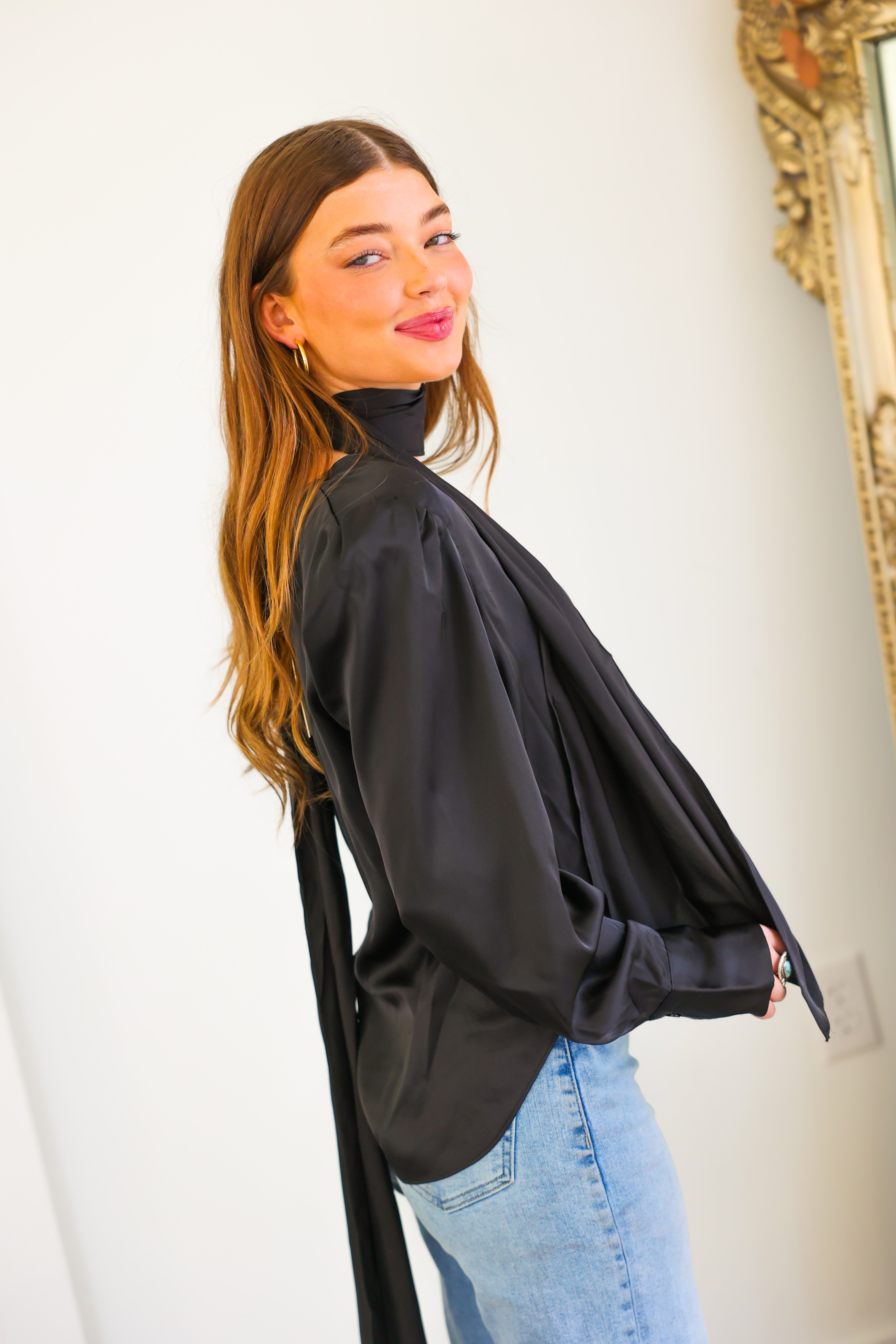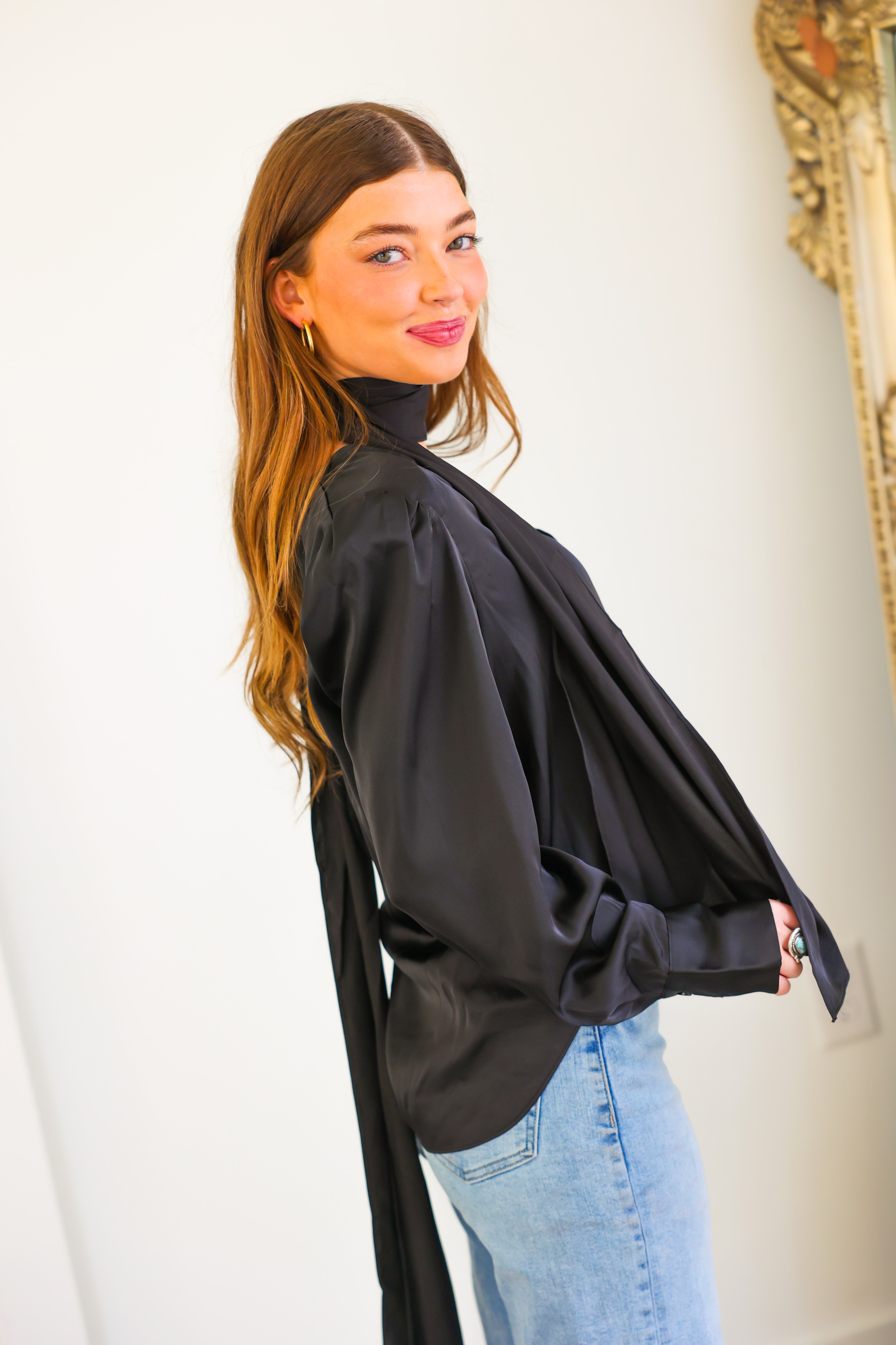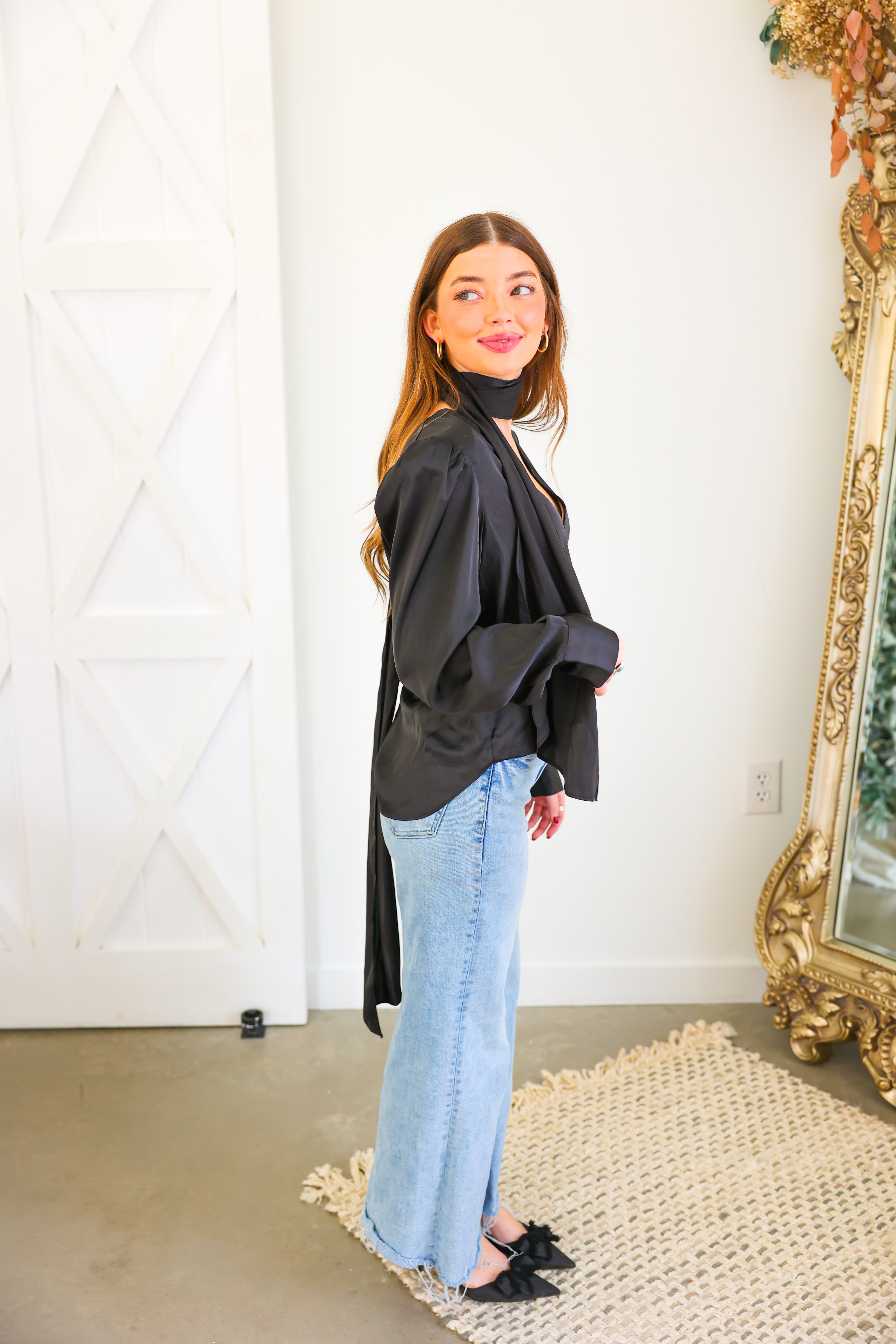 Black Oversized Faux Leather Front Pocket Collared Zip Up Jacket