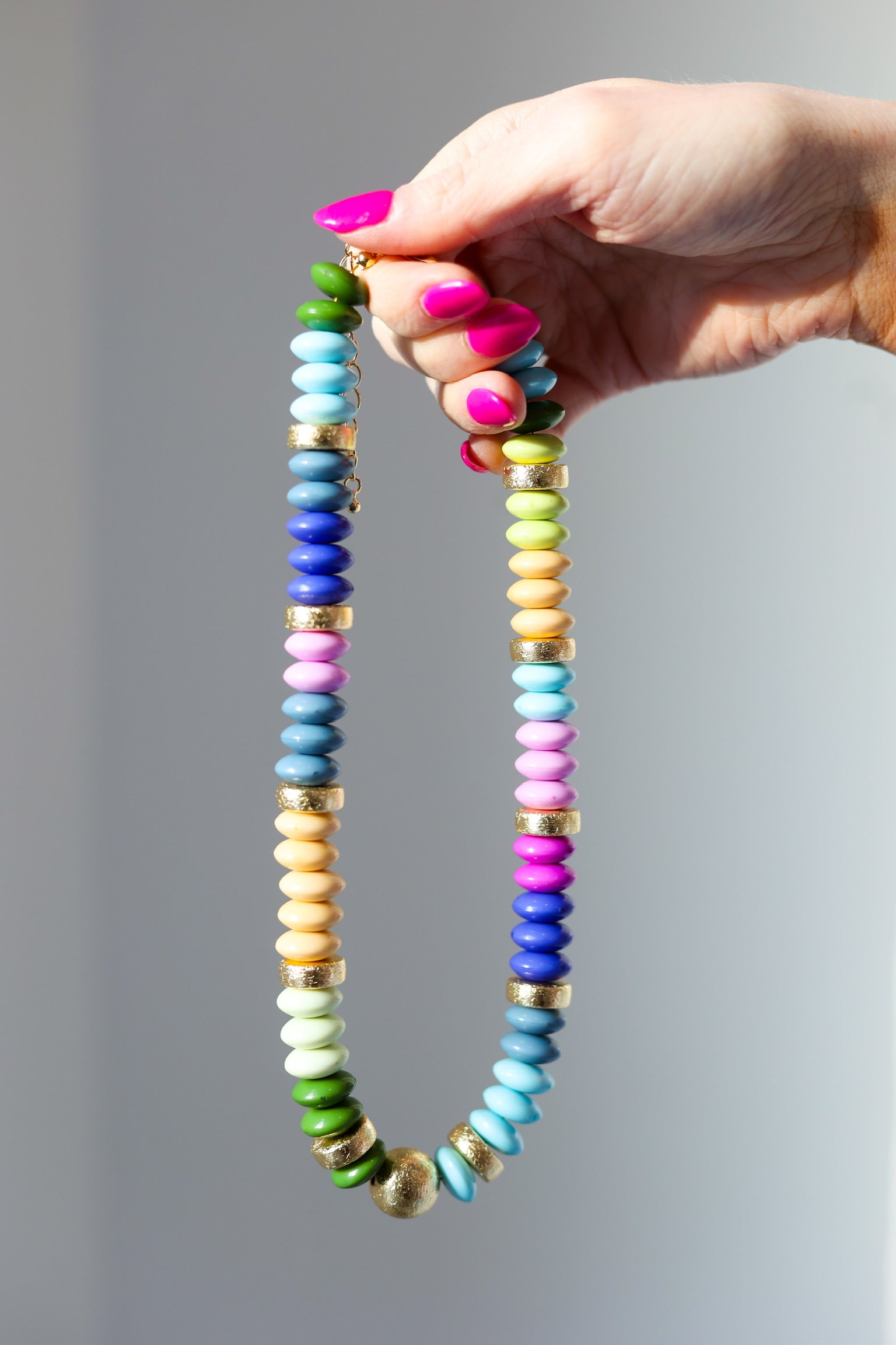 Bright and cheerful, the Tobie Necklace features a rainbow of beads for a bold statement.