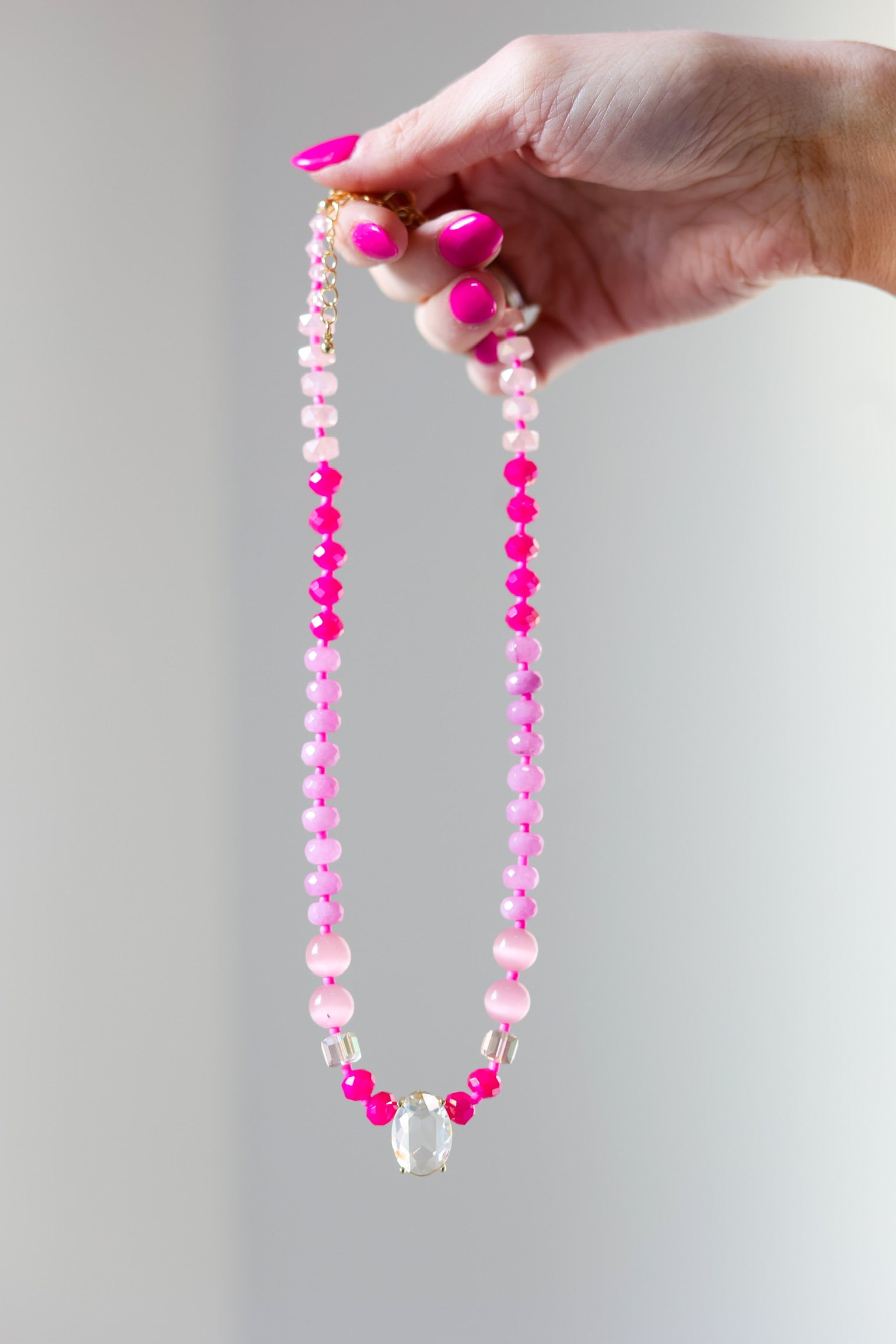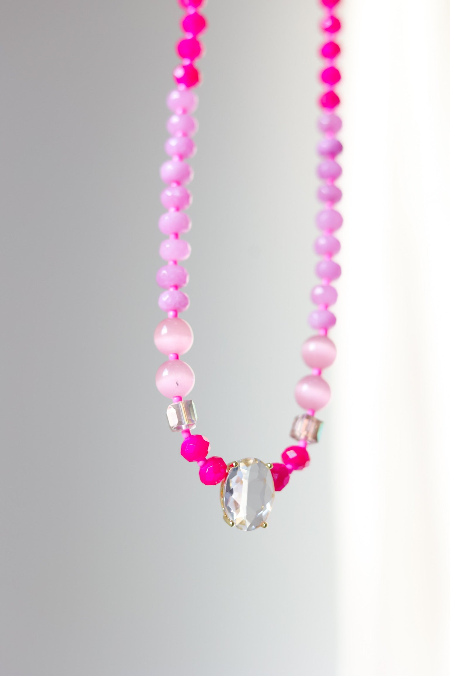Soft pink tones meet meaningful design in this beautifully balanced necklace.