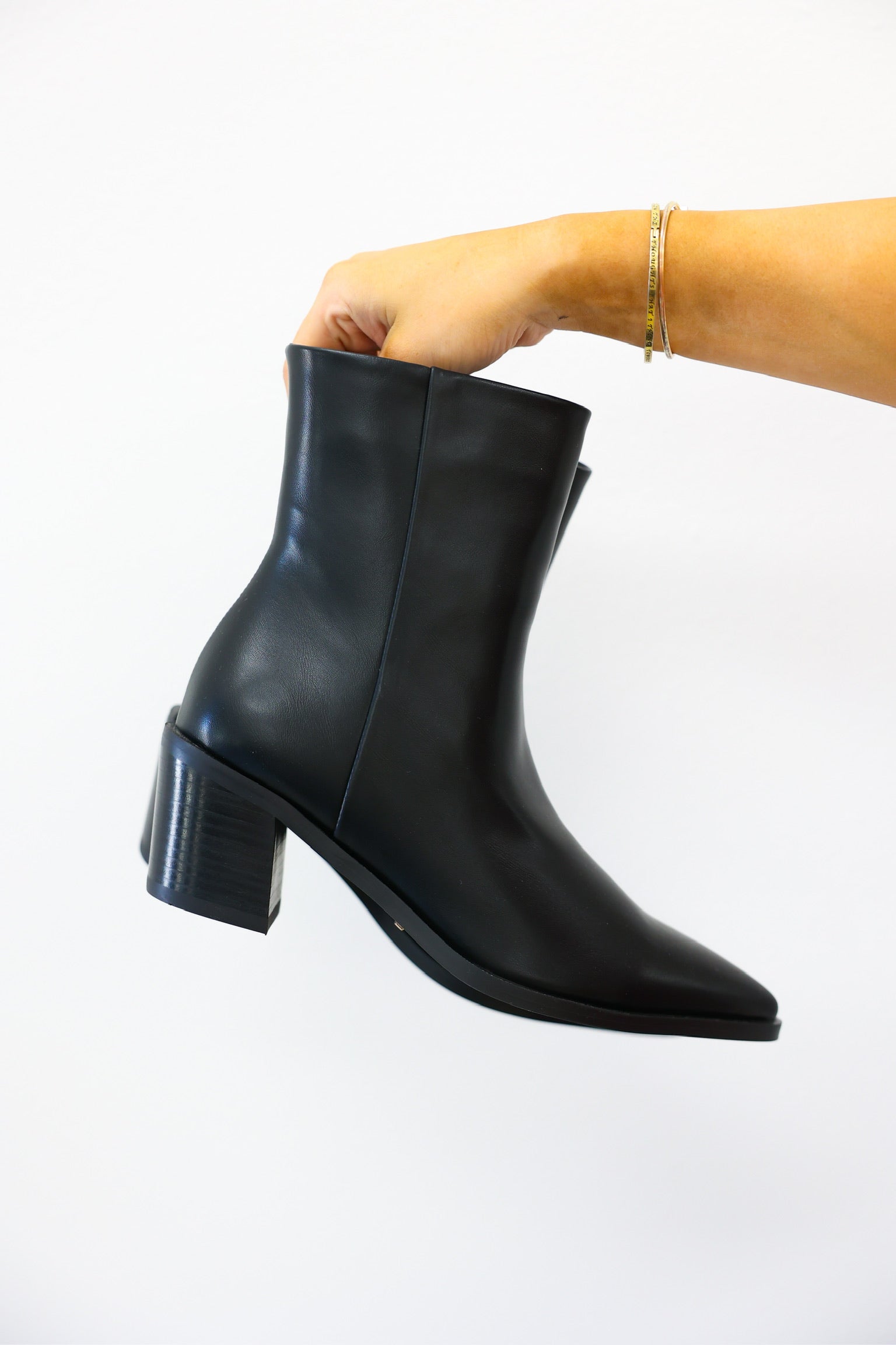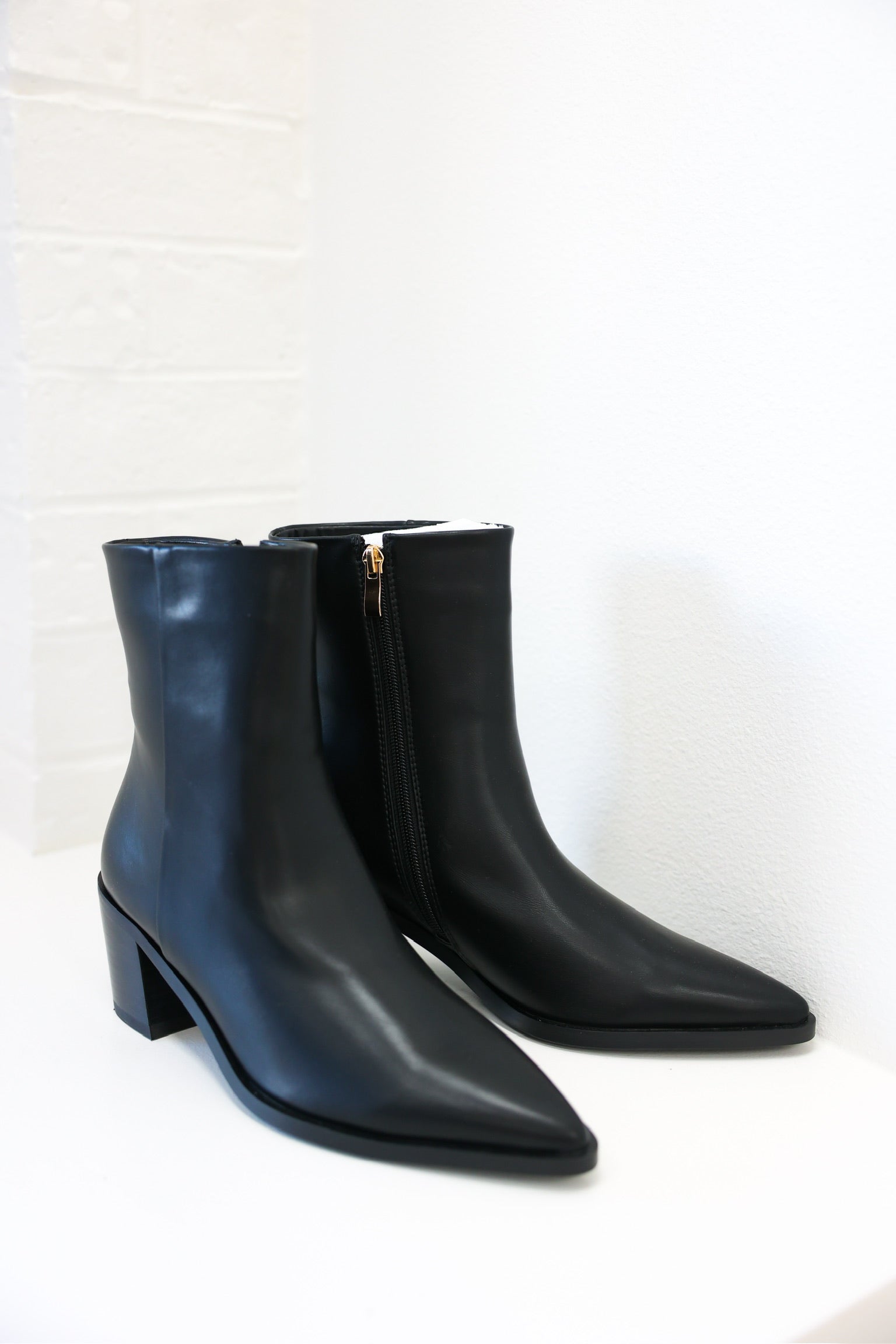 This pointed wedge ankle boot is a classic silhouette suited to all wardrobes.