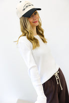 This fitted thermal is all about ease, crafted in soft waffle knit that feels cozy yet lightweight. Wear it solo for a clean look, or layered when the days cool down.