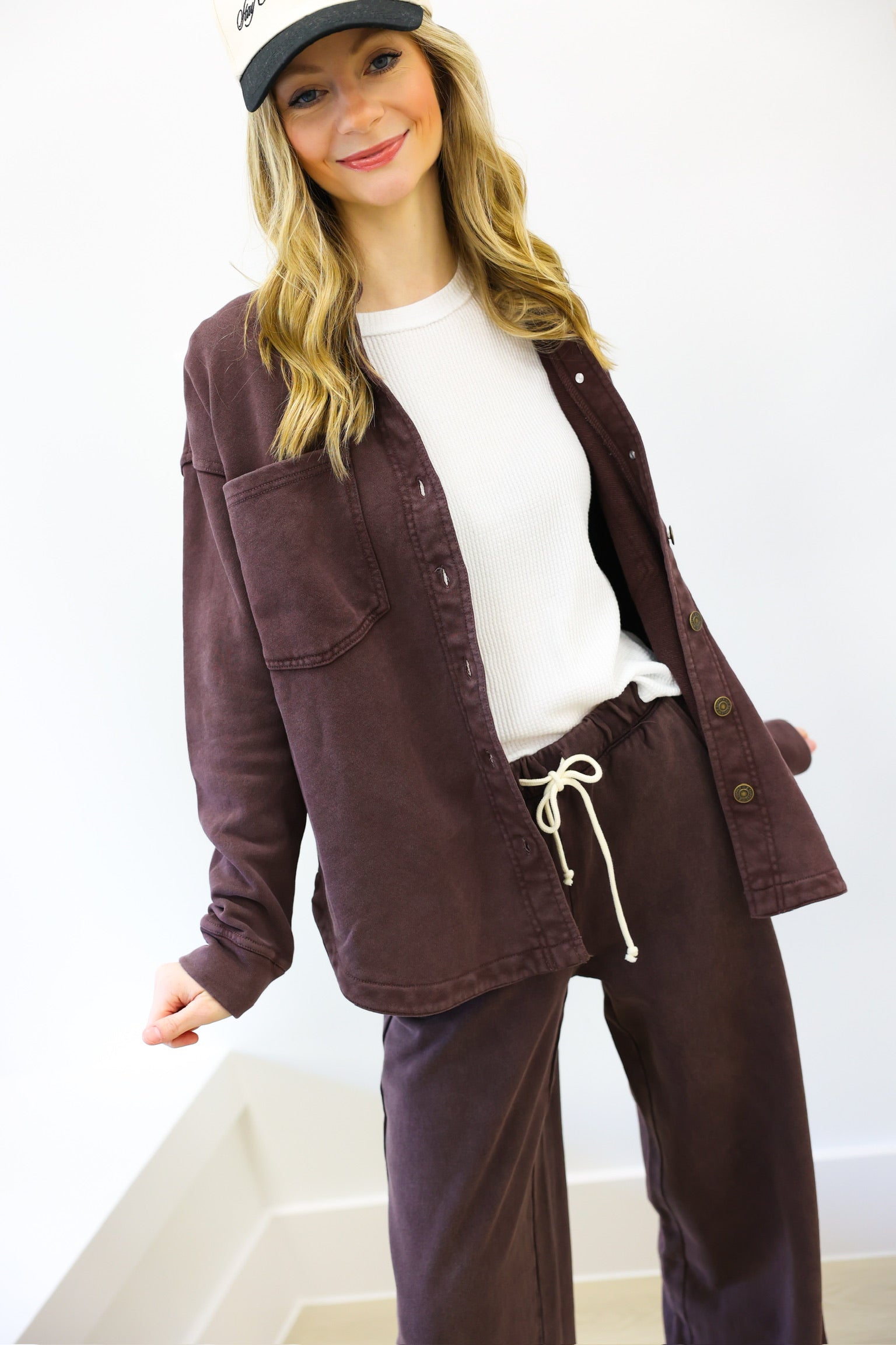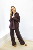 Elevate your comfort and style with the Chocolate Cherry Hunter Knit Pant. Crafted from soft, stretchy knit fabric, these pants offer a relaxed yet flattering fit that moves with you. The rich chocolate cherry color adds warmth and sophistication, making them perfect for lounging or casual outings. Experience versatile comfort that effortlessly enhances your everyday wardrobe.