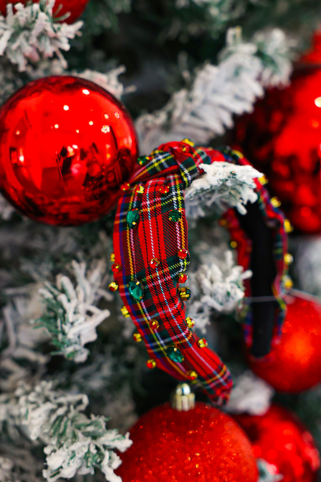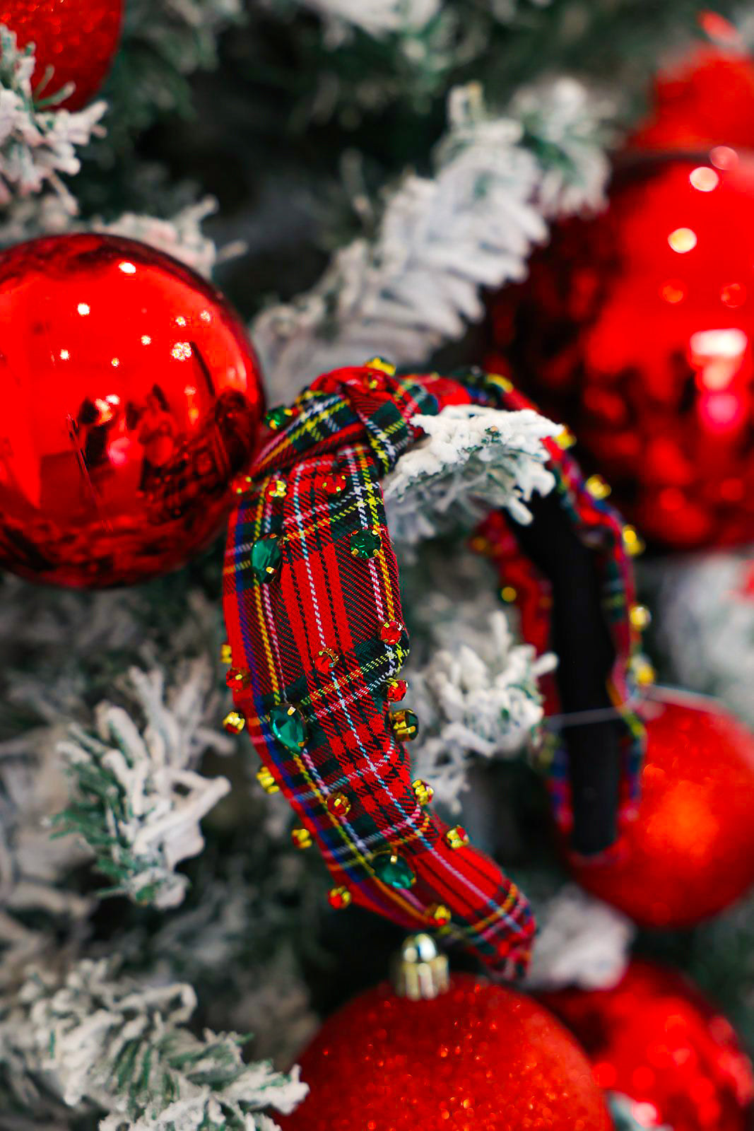 Red Plaid Jeweled Headband