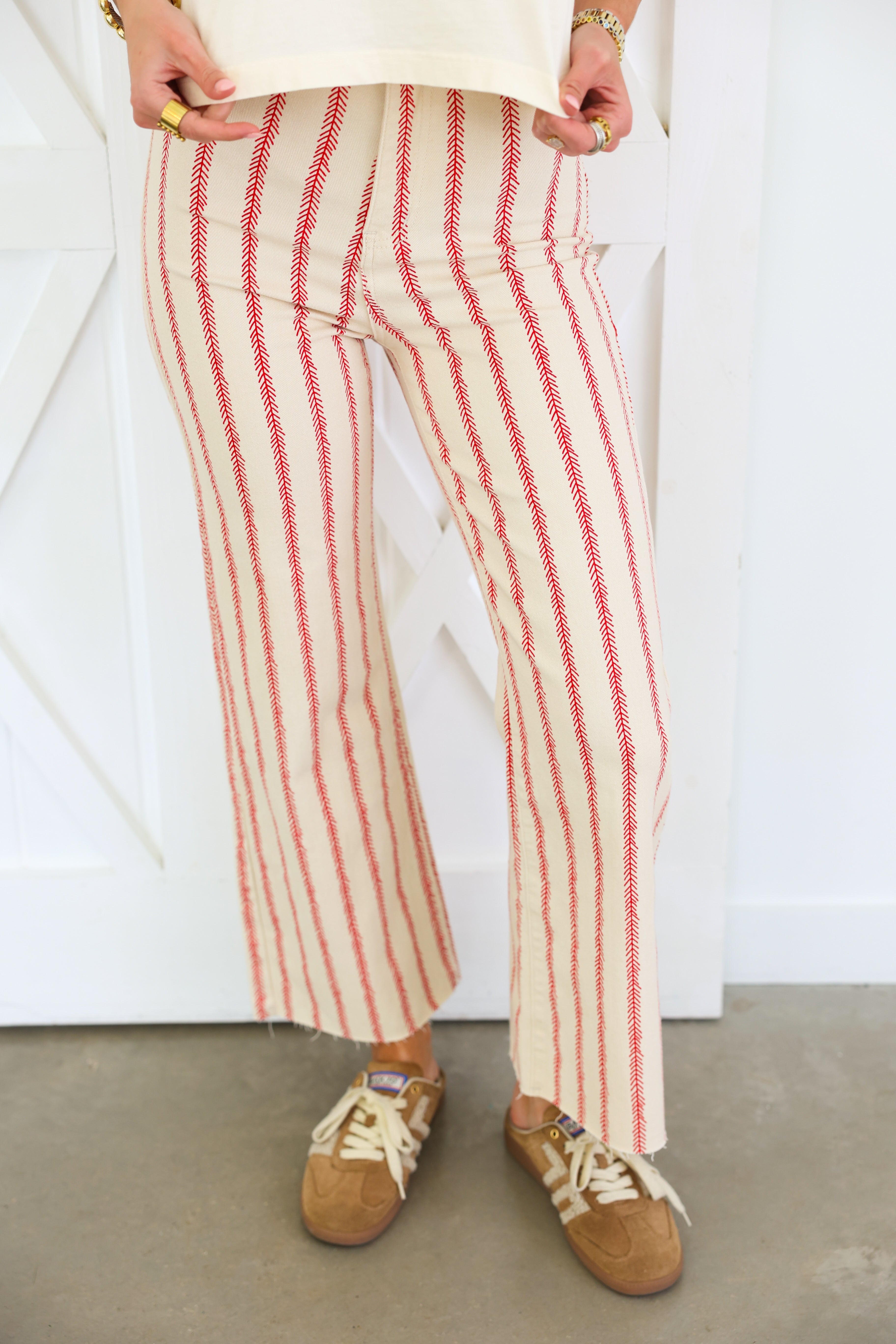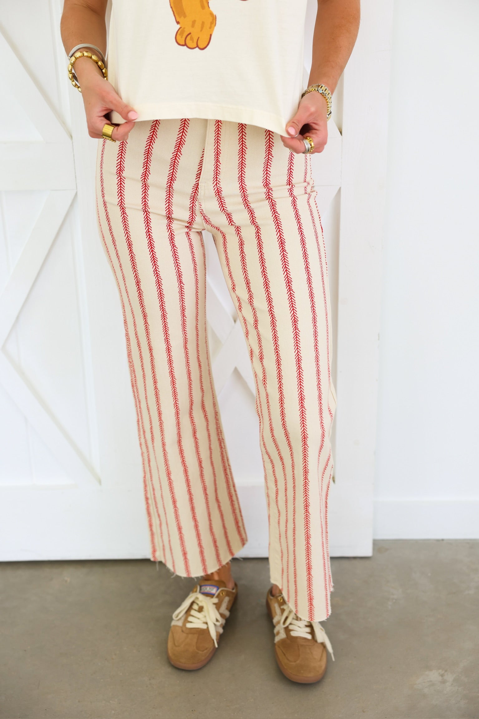 Wide Leg Cuffed Striped Jeans - Hey Sun