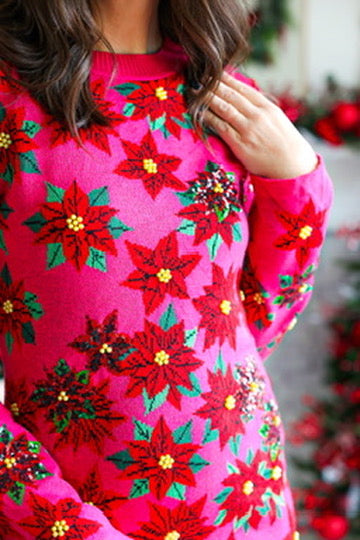 Pink & Red Poinsettia Knit Midi Dress Queen of Sparkles