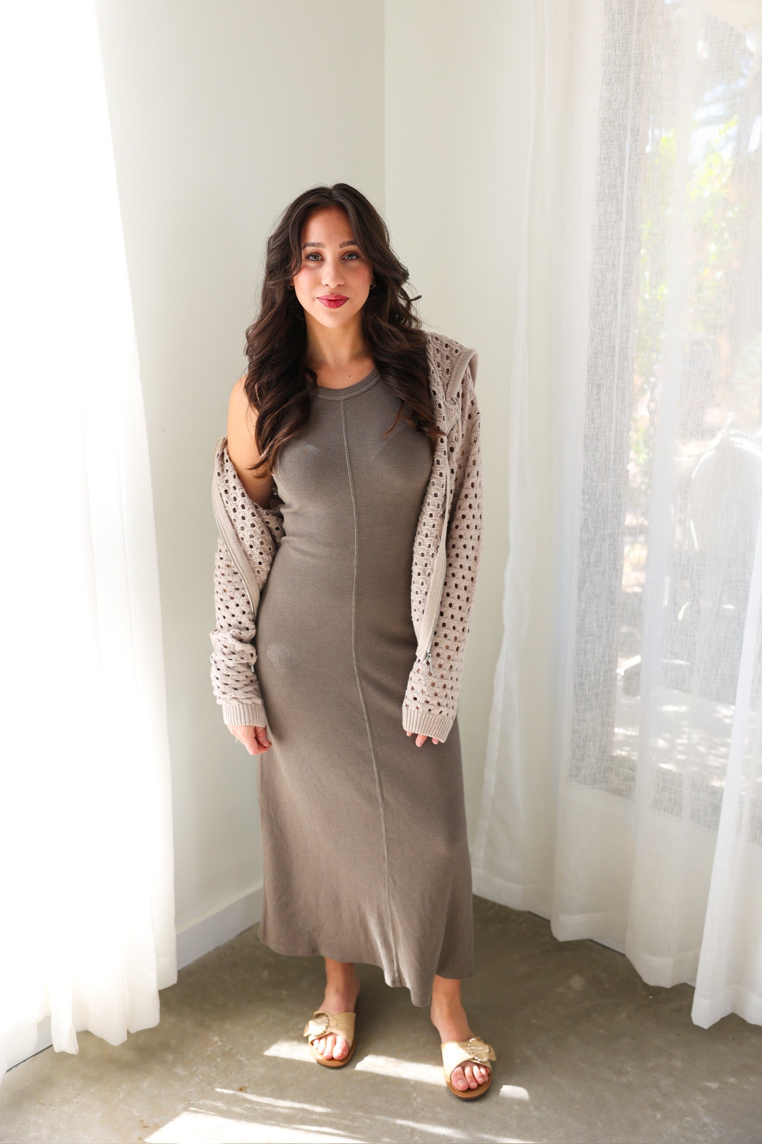 Clean, minimal, and endlessly wearable, the Linden Rib Midi Dress is a timeless staple you’ll reach for again and again. Its ribbed texture and streamlined silhouette create an effortlessly flattering look.