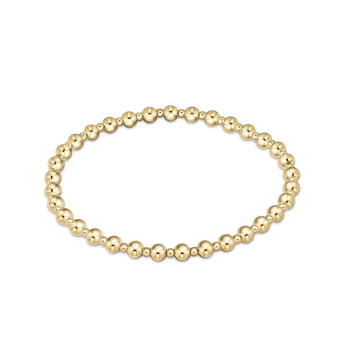 Introducing our new pattern, grateful. This bracelet is a classic gold beaded bracelet with alternating bead sizes. The larger bead size is a 4mm and the smaller bead size is a 2mm.