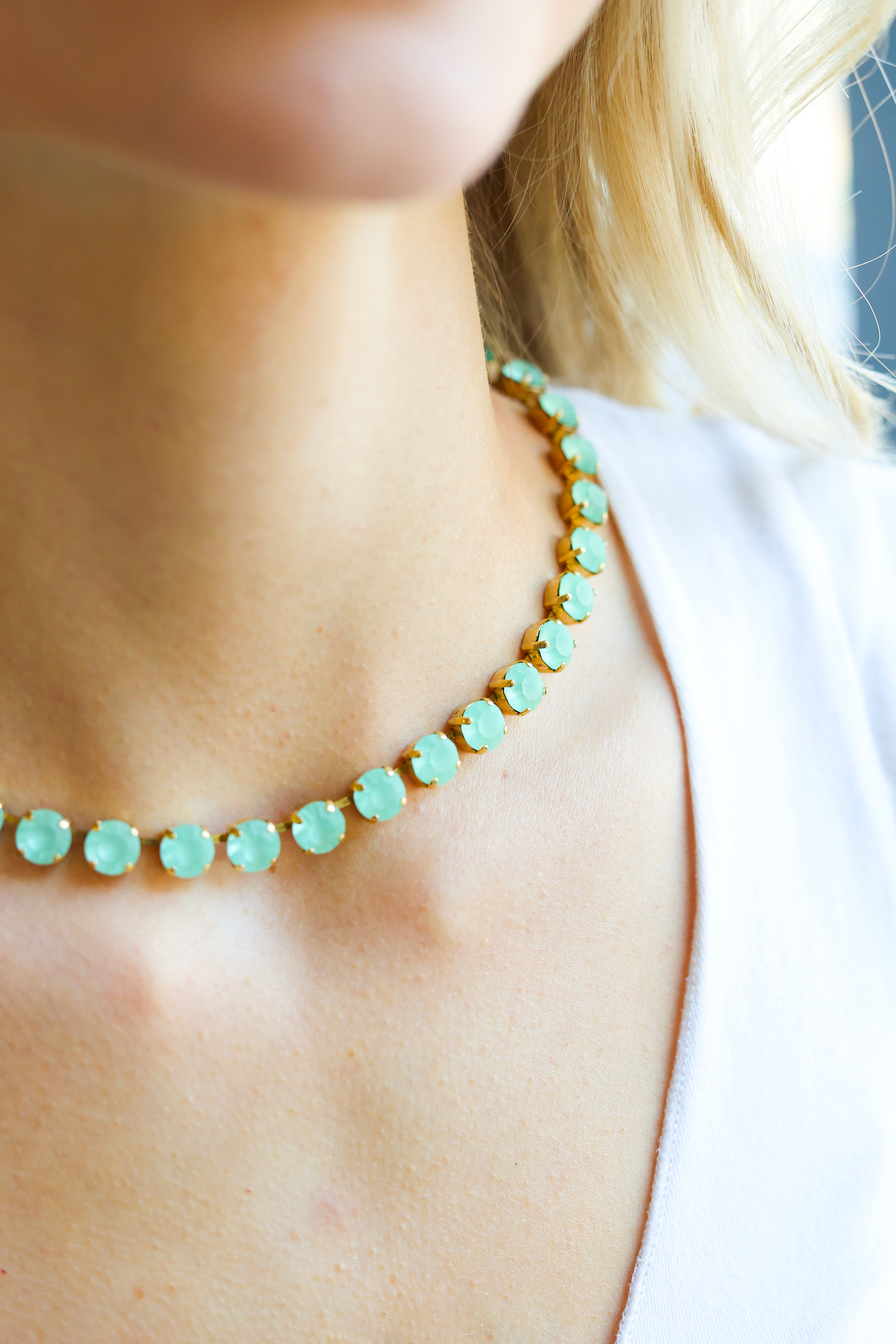 Brunch 🥂, beach vacations 🌴, girls’ trips ✈️, date nights 💕, weddings and showers 💍💐, summer events ☀️, and everyday chic moments. This is the perfect colorful crystal necklace when you want to look effortlessly polished and radiant.