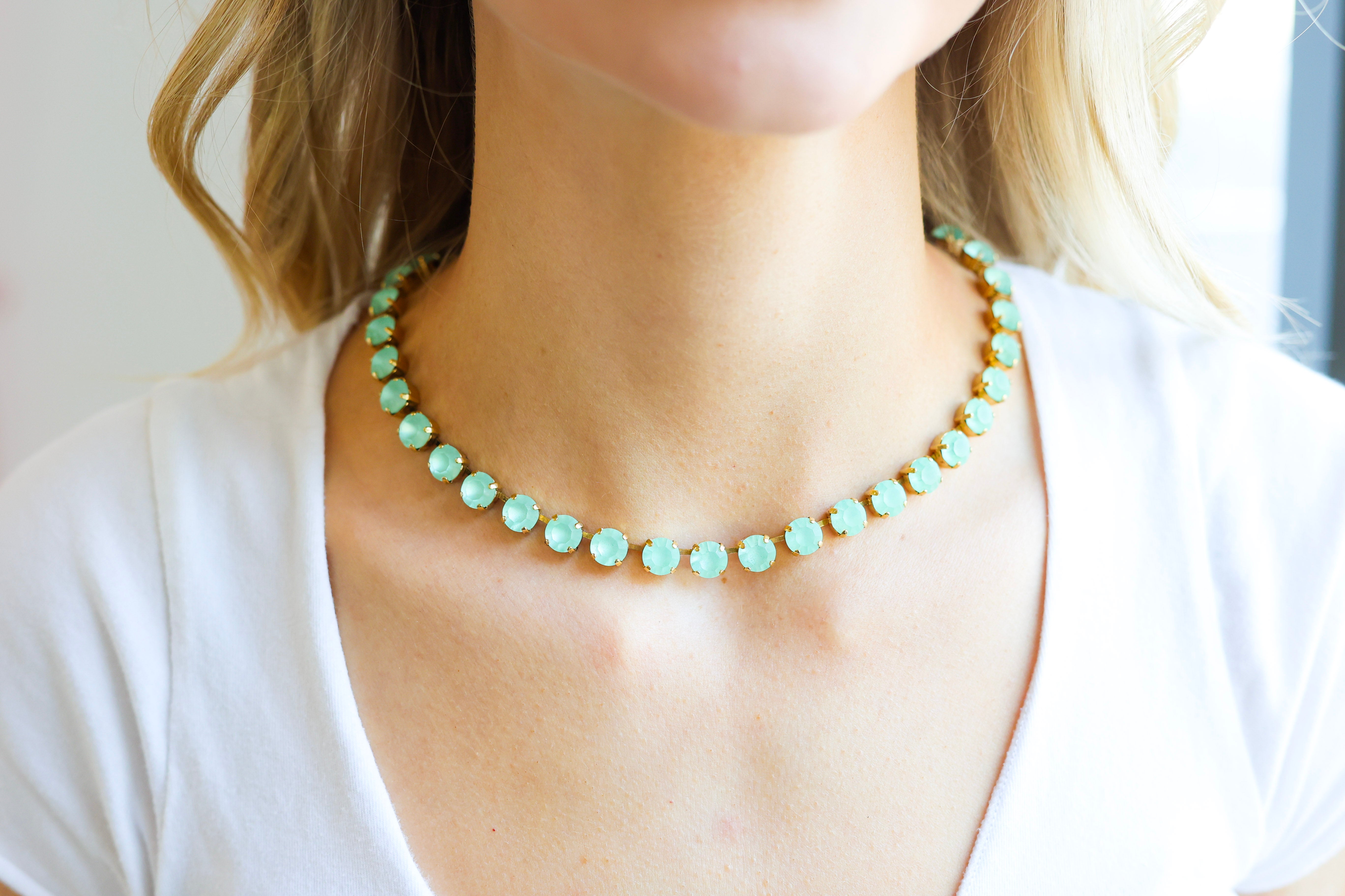 Perfect for women who love TOVA jewelry, aquamarine jewelry, crystal statement necklaces, luxury boutique accessories, and designer-inspired pieces, the Oakland Necklace in Aquamarine Matte delivers a refreshing, elevated sparkle that feels both timeless and on-trend. The soft blue matte finish adds a unique, modern touch while still catching the light beautifully.