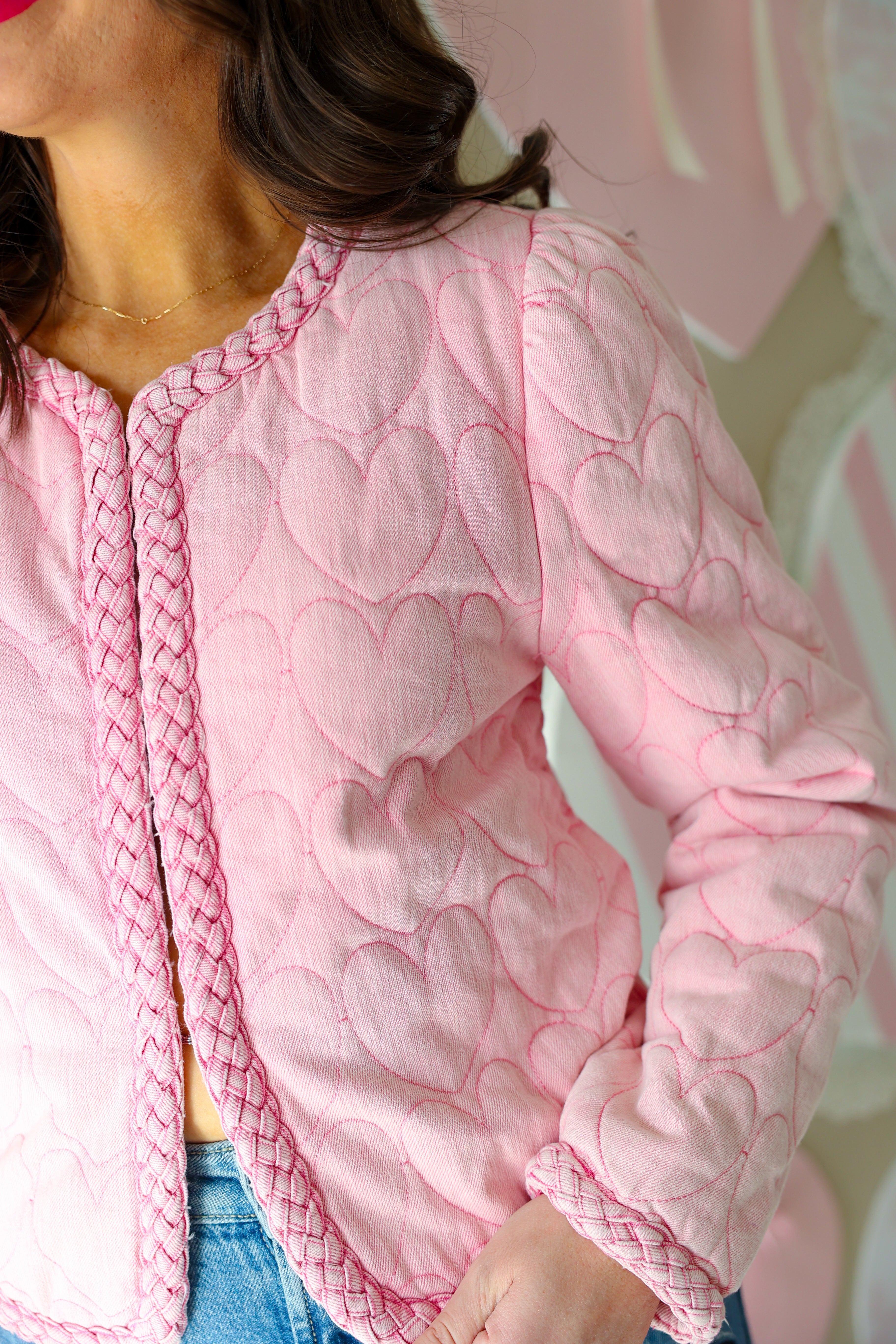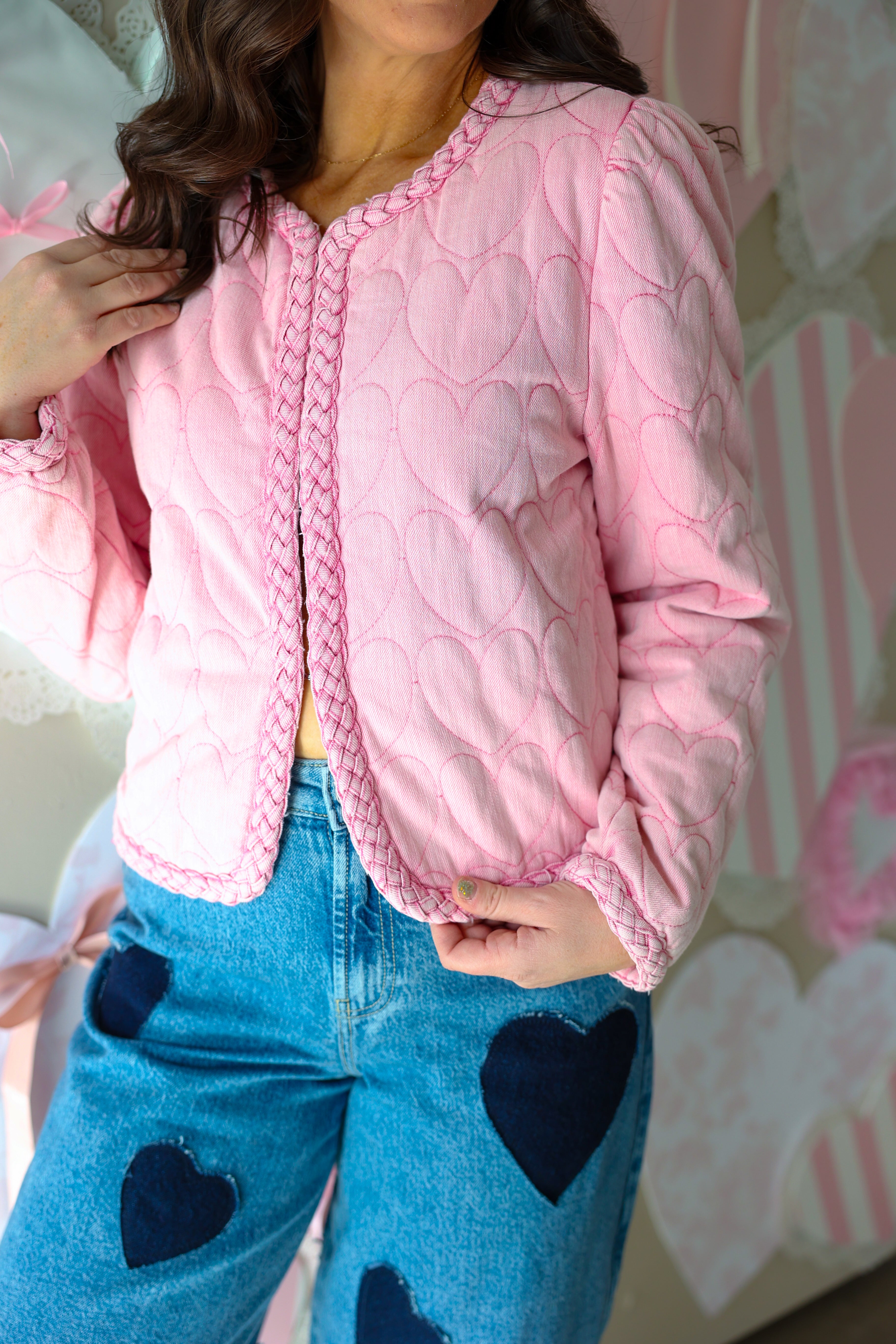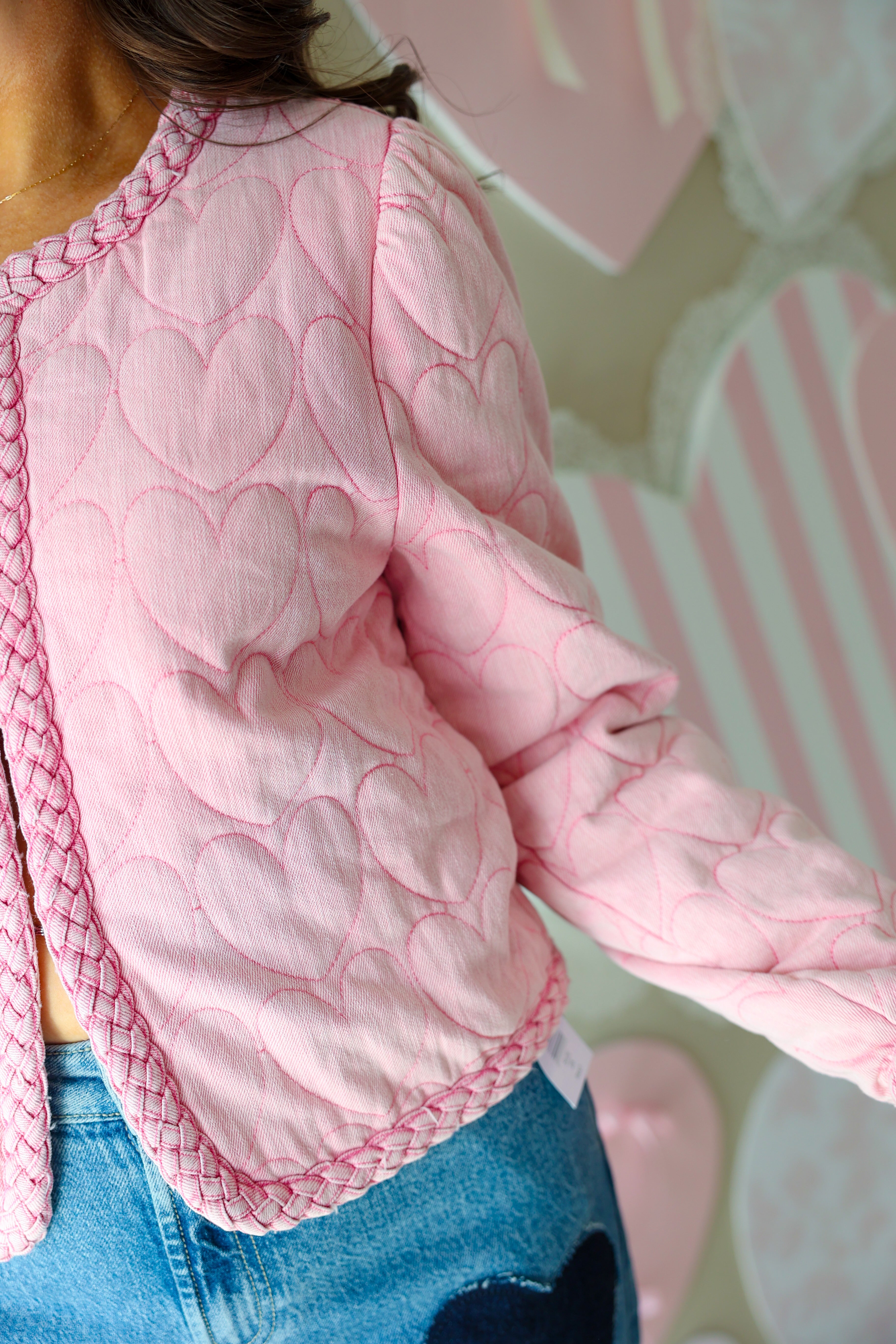 KARLIE Novelty Heart Stitch Denim Jacket