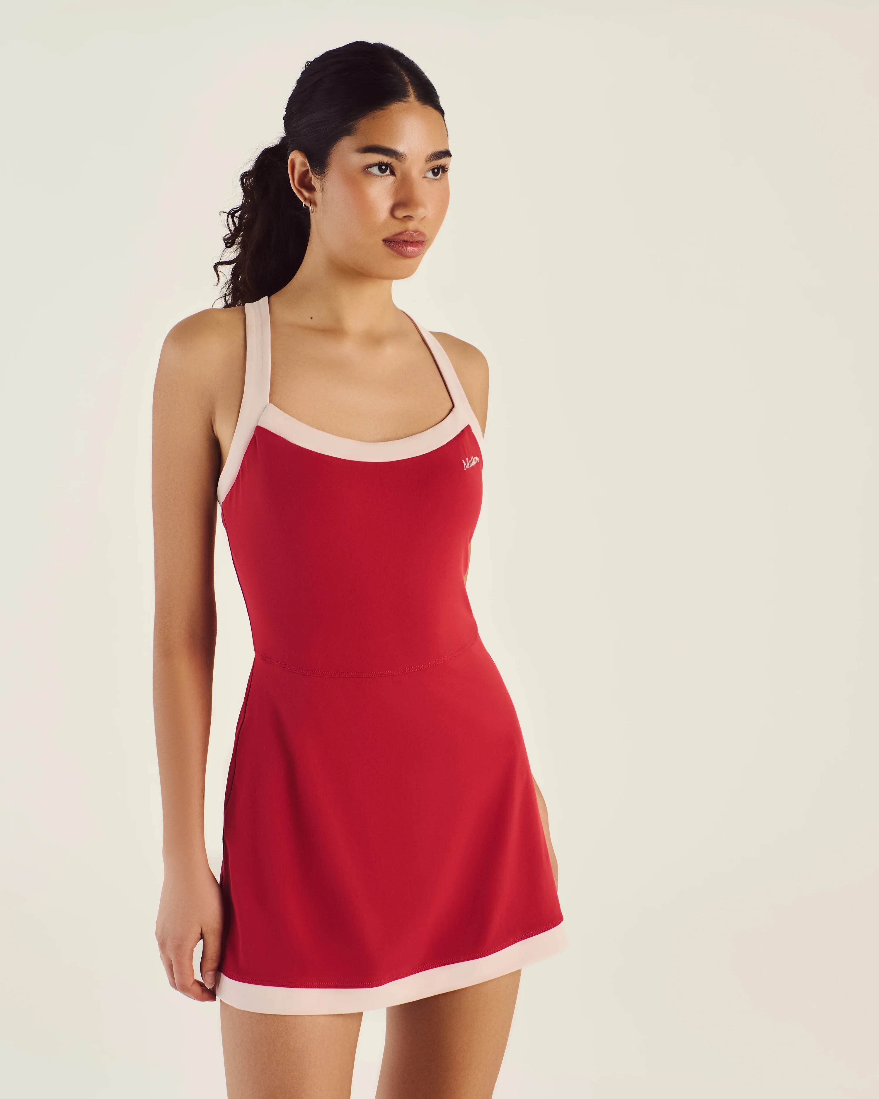 The Emiliana Dress has integrated support features, including a built-in bra with padded cups for comfort and security during active movement. This versatile design seamlessly blends functionality with style, incorporating convenient built-in shorts with pockets that provide practical storage without compromising its sleek, athletic aesthetic.