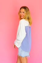 Elevate your casual wardrobe with the Switch It Up Sweatshirt in grey, featuring a striking blue striped back for a fresh, modern twist. Crafted for comfort and style, this sweatshirt effortlessly blends cozy warmth with eye-catching design, making it perfect for everyday wear or layering on cooler days. Stand out while staying comfortable—switch up your look with this versatile essential.