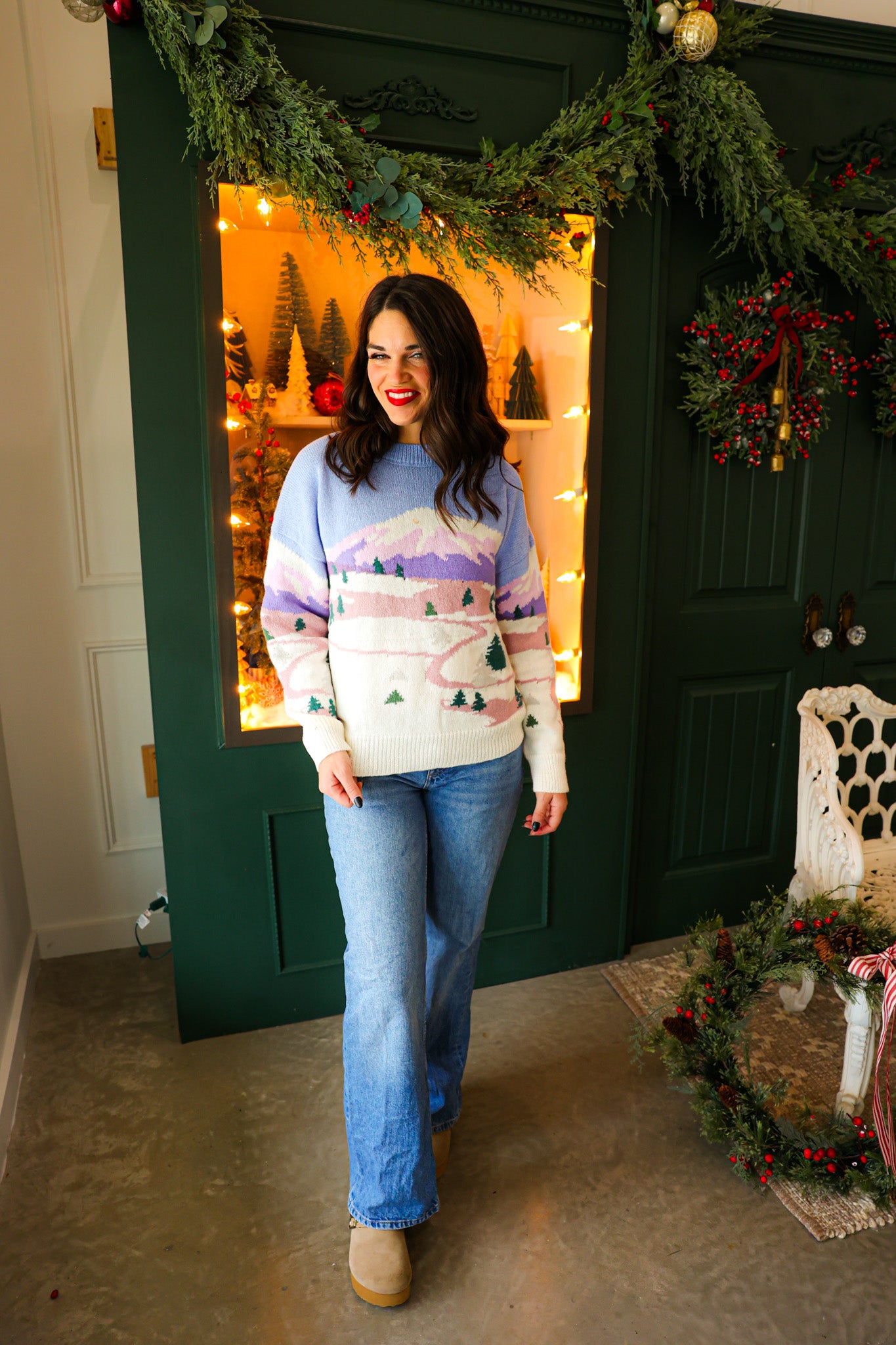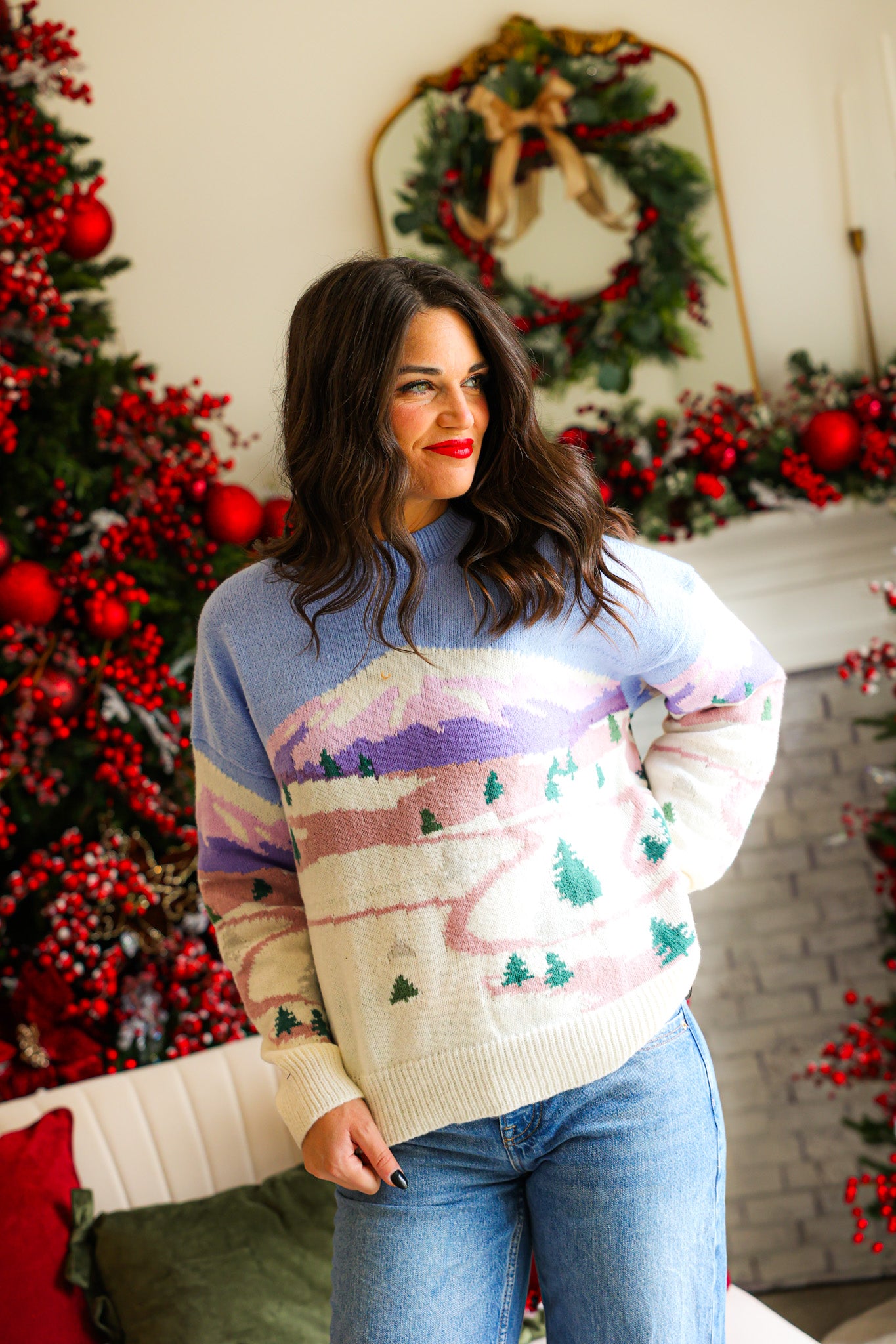 Escape into a winter wonderland with this stunning Blue Snowy Mountain Sweater! Picture yourself wrapped in soft, cozy comfort as light blue hues transport you to a serene alpine landscape. The charming design features majestic snow-capped peaks and festive evergreen trees, bringing the magic of the season right to your closet! Perfect for those chilly days when you want to feel both stylish and snug, this sweater delivers warmth without sacrificing that relaxed, comfortable fit you crave! Whether you're sipping hot cocoa by the fire or enjoying outdoor winter adventures, this piece is your go-to for effortless seasonal style.